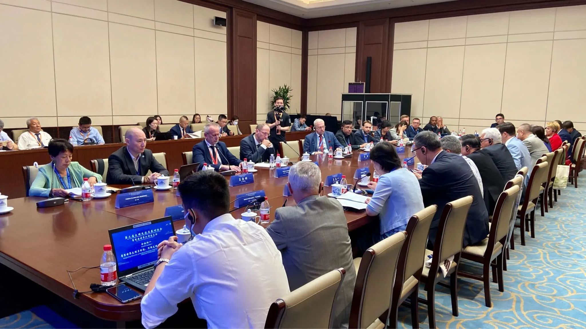 7月3日,中共中央总书记、中国国家主席习近平向第三届文明交流互鉴对话会暨首届世界汉学家大会致贺信。习近平主席对汉学家的关注让大家备受鼓舞,汉学家们对未来学术研究工作充满信心。开幕式结束后,在北京语言大学校长段鹏,世界汉学中心主任徐宝锋的组织带领下,三十余位来自世界各地的汉学家展开座谈交流,研讨领会习近平主席重要贺信精神。