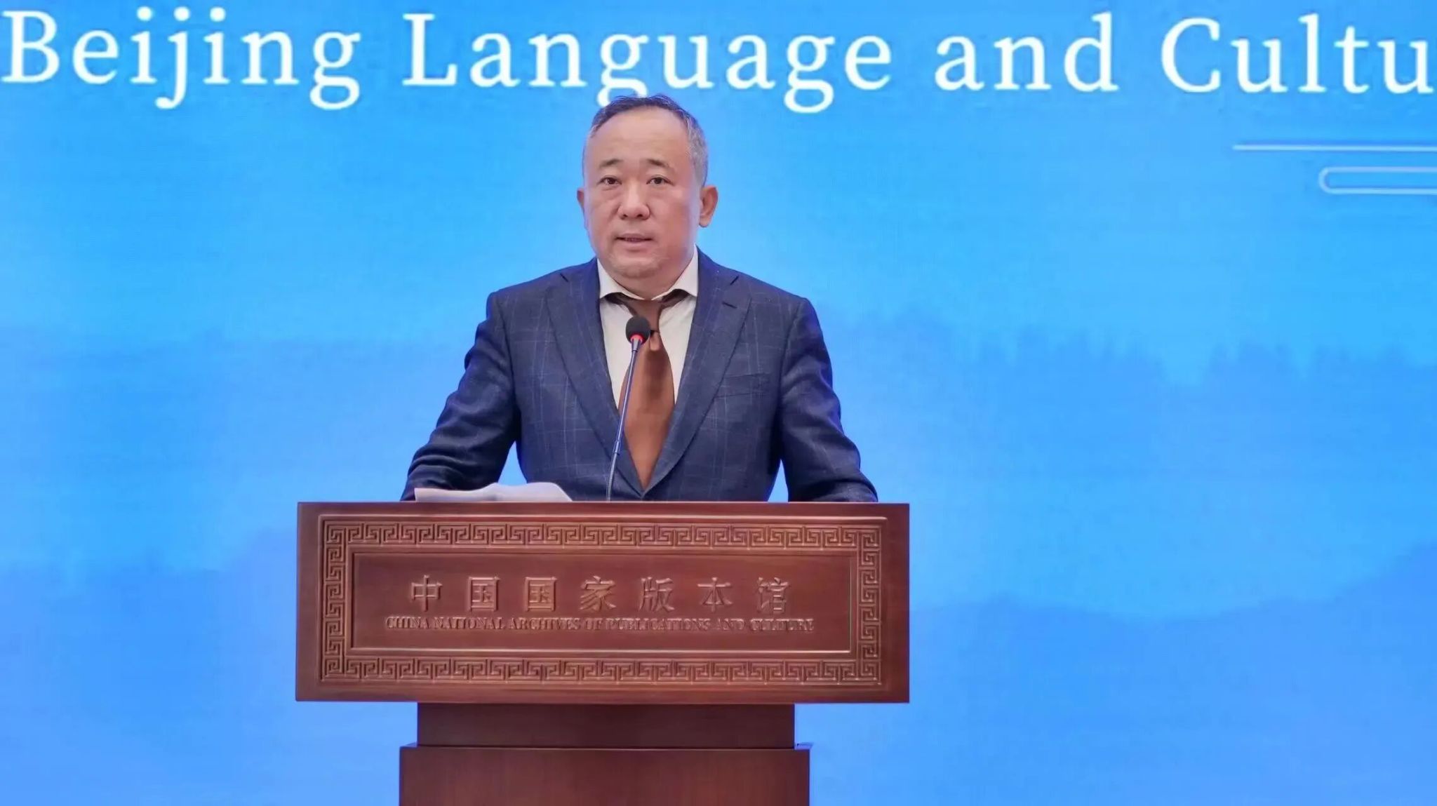 北京语言大学校长段鹏,中国国家版本馆馆长刘成勇,世界汉学中心主任徐宝锋出席座谈。