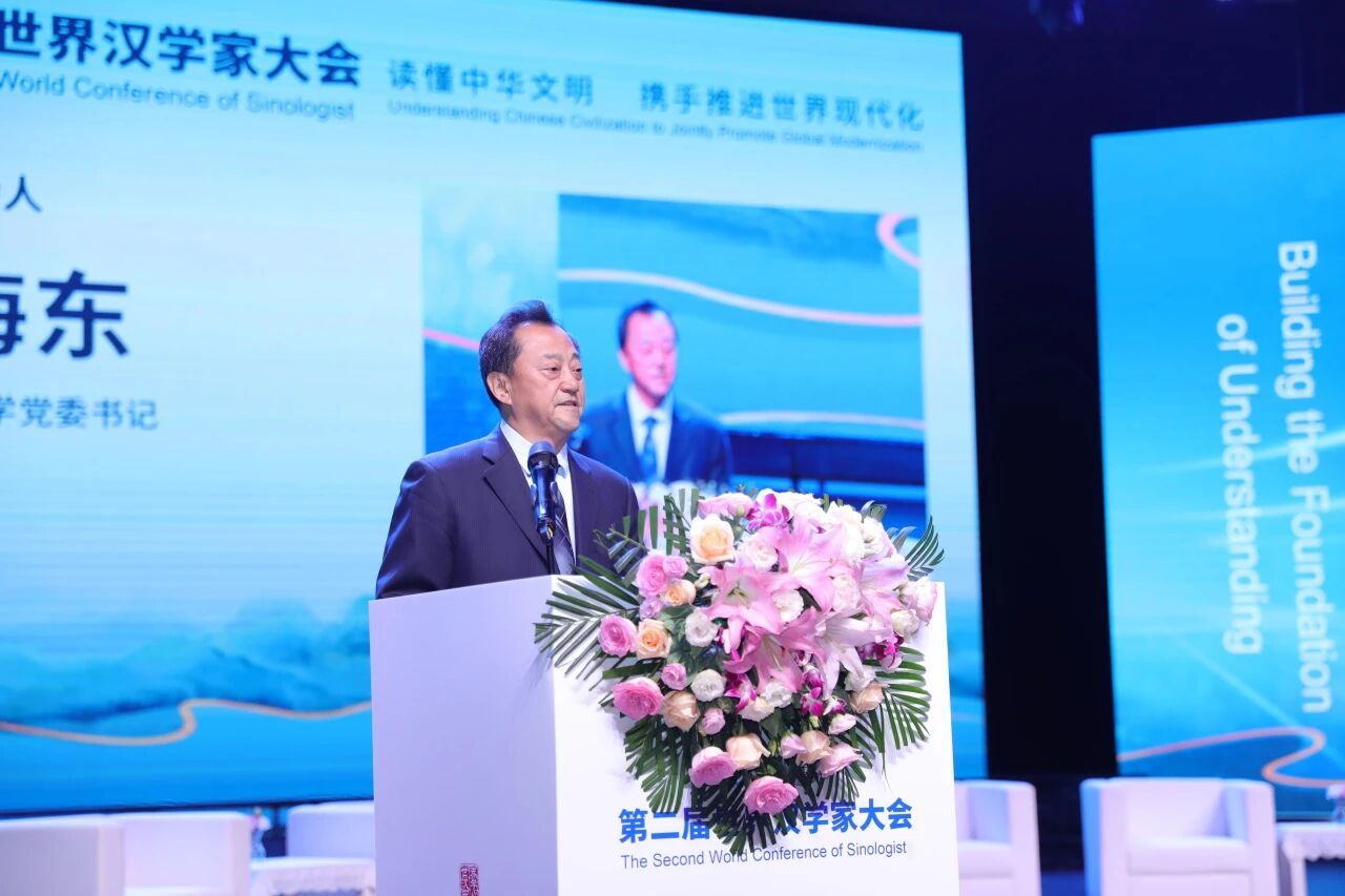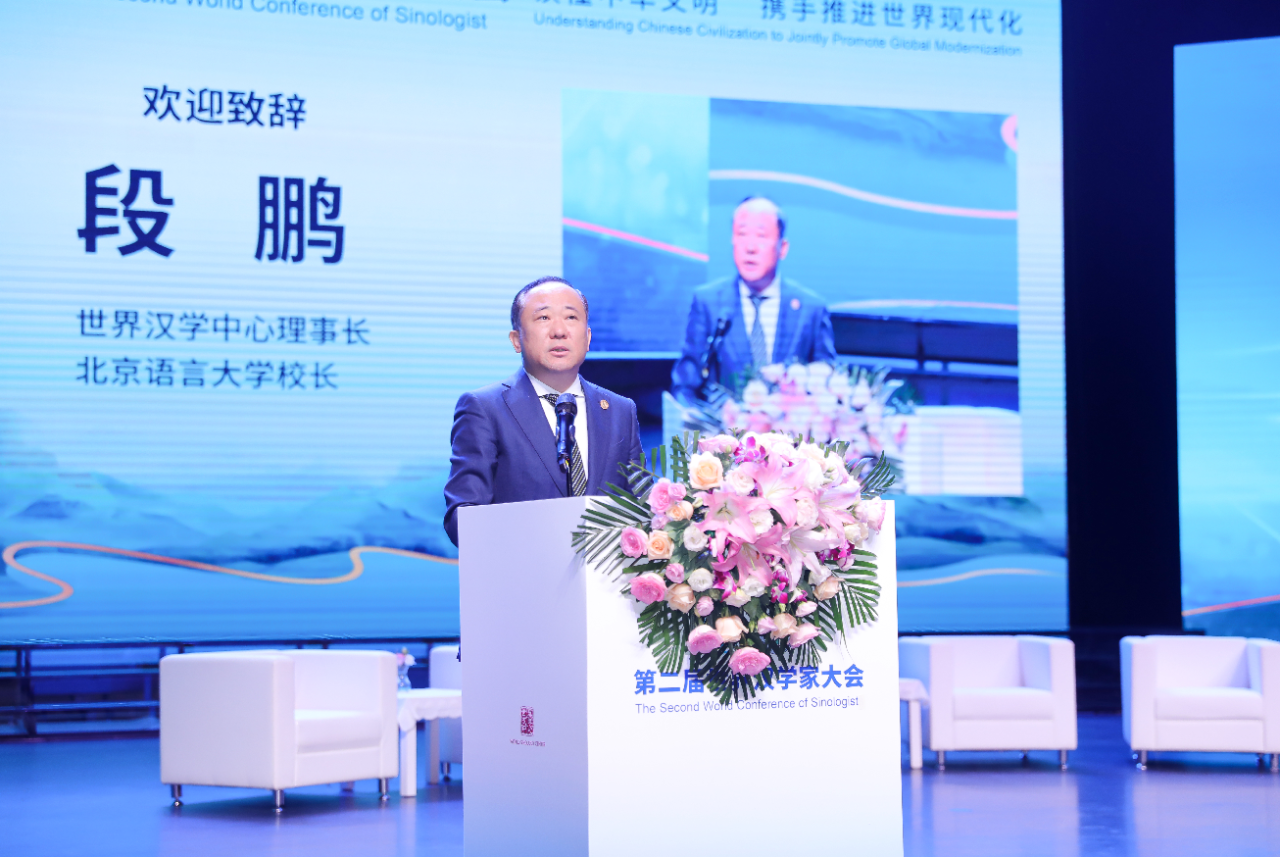 段鹏校长表示,中华文明作为世界上唯一绵延不断并以国家形态发展至今的伟大文明,其传承与发展对于世界现代化进程具有重要参照价值。汉学研究应将其视为“活的”传统进行解读,关注中华文明在中国现代化进程中发挥的作用,把中国文化的多个方面放到世界历史的发展进程中去探讨,让世界重新认识中华文明和今天的中国发展道路。段鹏校长强调,人类文明的多样性是世界的基本特征,也是人类进步的源泉。中华文明的包容性决定了文明交流互鉴过程中所形成的兼收并蓄、开放和谐的形态与格局。汉学家们的研究与翻译工作,不仅展现了多元立体、可亲可爱的传统中国形象,还把以和平、发展、开放、合作、共赢为鲜明特征且致力于践行全球文明倡议的现代化中国故事向全世界讲述出来。在全球政治经济格局日趋动荡、文化走向撕裂与极化的当下,我们更需要有建设性和引领性的思想和话语来带动世界未来的发展。正如习近平总书记在全球文明倡议中所提到的,要共同倡导加强国际人文交流合作、探讨构建全球文明对话合作网络、丰富交流内容、拓展合作渠道,促进各国人民相知相亲、共同推动人类文明发展进步。段鹏校长特别介绍,北京语言大学积极贯彻习近平总书记讲话精神,目前已在全世界建立了23所孔子学院和孔子课堂;在阿根廷、希腊、阿塞拜疆、乌拉圭、智利等12个国家,建立了汉学中心;并且在积极推进亚洲经典著作互译计划,与新加坡、韩国、伊朗等18个国家签署了部长级的经典著作互译备忘录,在海外产生了积极而广泛的学术影响。北京语言大学将继续发挥“世界汉学家摇篮”的优势力量,与世界各地的汉学家们携手,为推进世界现代化贡献北语的力量。他呼吁各位嘉宾充分利用大会平台,深入交流,为汉学研究的未来发展碰撞出火花,共同为推动全球文化交流与多元文化的繁荣发展,携手推进世界现代化贡献智慧与力量。