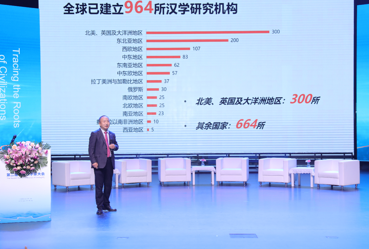 开幕式上,世界汉学中心主任、世界汉学家理事会召集人徐宝锋发布了世界范围内首个《世界汉学发展报告》(以下简称《报告》),对全球108个国家和地区的汉学建设成果进行了分析。北京语言大学卓越青年科学家创新团队在首席专家徐宝锋教授的带领下,历时三年,通过口述访谈,田野调查、文献分析等研究路径,系统性梳理完成了自建国以来全球五大洲汉学与中国学的发展情况,完成了32万字的《报告》。报告分为两大部分,共15章。通过详实的数据,全面、深入地反映了世界汉学与中国学在全球范围内的发展情况,勾勒出了全景式的世界汉学图谱,是中外文明互鉴的重要参考。