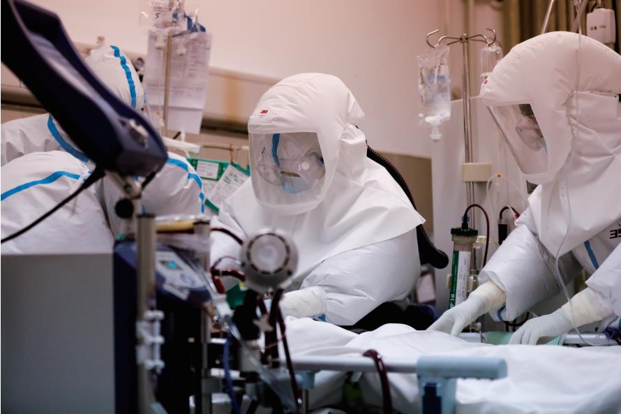 中部战区总医院感染科病房内,医护人员正在抢救危重病人