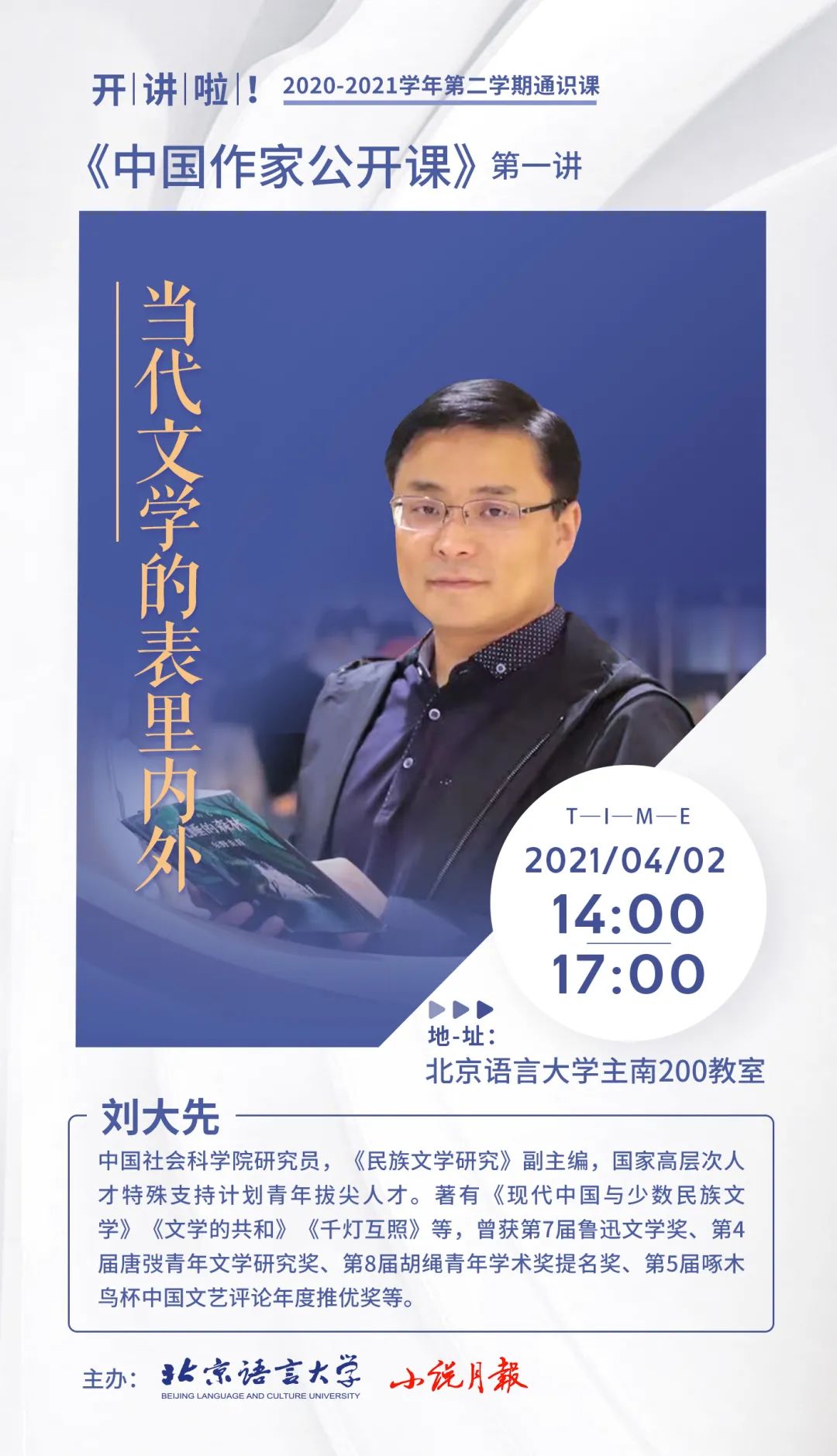《中国作家公开课》旨在引导中外学生阅读文学经典,使中外学生通过面对面聆听中国当代作家的专题演讲获得对中国当代文学与中国社会的认知和体悟,以文学透视社会,以研讨提升思考,促进中外学生对当代中国的理解与认同。