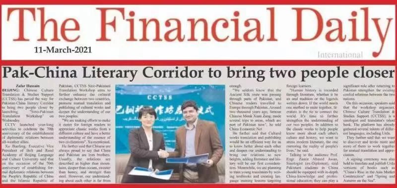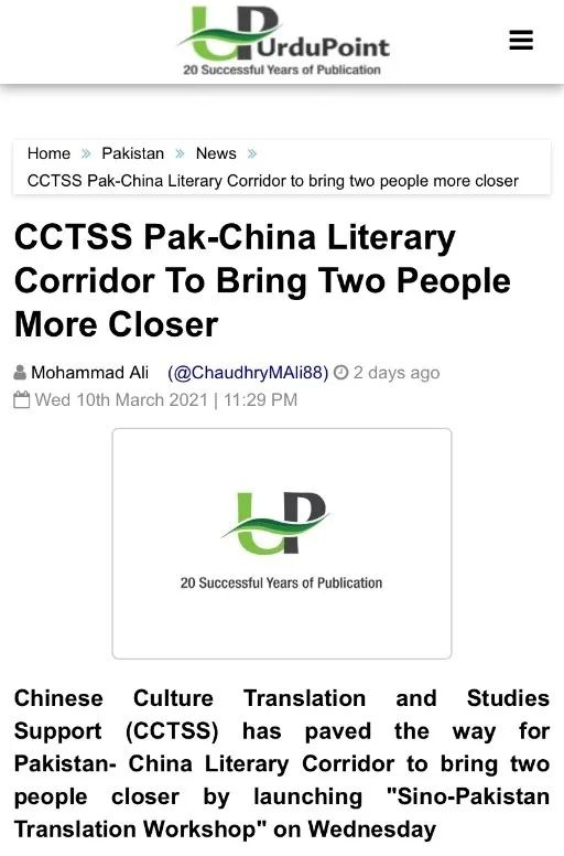 “CCTSS中巴翻译工作坊”在巴基斯坦产生广泛影响,AssociatedPressofPakistan、TheFinancialDailyInternational、NationalHeraldTribune、PakistanEconomicNet、China-PakistanEconomicCorridor、ChinaEconomicNet、GlobBizAvenueGawadar、TheInternationalDailyMail、UrduPoint、DailyAlakhbar、DailyIttehad、BaaghiTV、PKNews、DailySubnews、VoiceofPublic等15家巴基斯坦媒体予以报道。