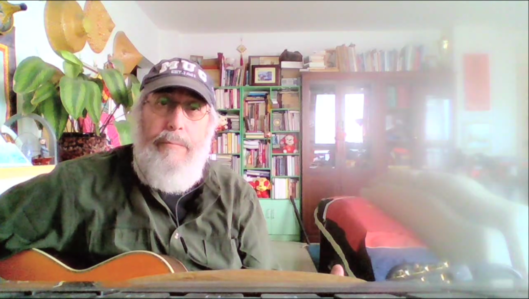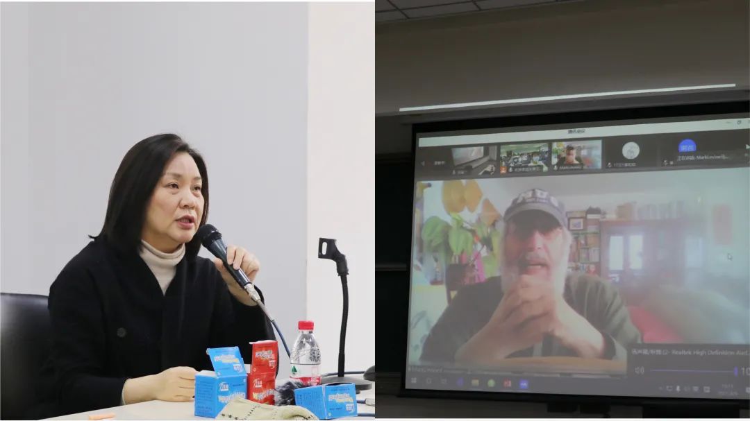 随后,美国作家马克·力文以线上的形式分享了他的写作心得。马克·力文在华从教多年,根据自己的经历创作了大量关于中国的文字作品和音乐作品。他强调写作也是一种交流,交流就意味着充分了解读者,并找到一种合适的方式有效地传达信息,无论是小说、新闻、图书、电影或音乐,都可以是讲故事的手段。最后,他以自己在中国的经历和写作为例,分享了他的创作成果,现场演奏的音乐作品引燃了课堂。