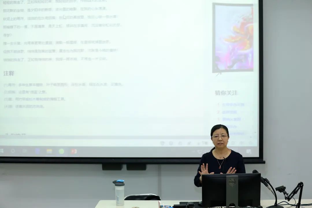 随后,李玲教授带领大家品读了徐志摩的《再别康桥》与《半夜深巷琵琶》、海子的《面朝大海,春暖花开》、冰心的散文《往事(二)之八》节选等作品,从中进一步解读作者的情感状态与生命意识。
