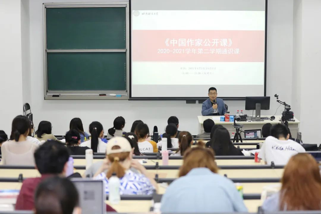2021年5月14日下午,“中国作家公开课”第六讲如约开讲,著名作家、茅盾文学奖得主、《人民文学》副主编徐则臣先生应邀走进课堂,带来了题为“故事的力量”的演讲。徐则臣作品的阿拉伯语译者叶海亚博士、波斯语译者孟娜博士以线上的形式参与了课堂交流。北京语言大学黄悦教授主持本讲课程,百花文艺出版社《小说月报》副主编徐福伟等专家学者出席讲座,校内外百余名本科生、研究生全程参与了此次课程。