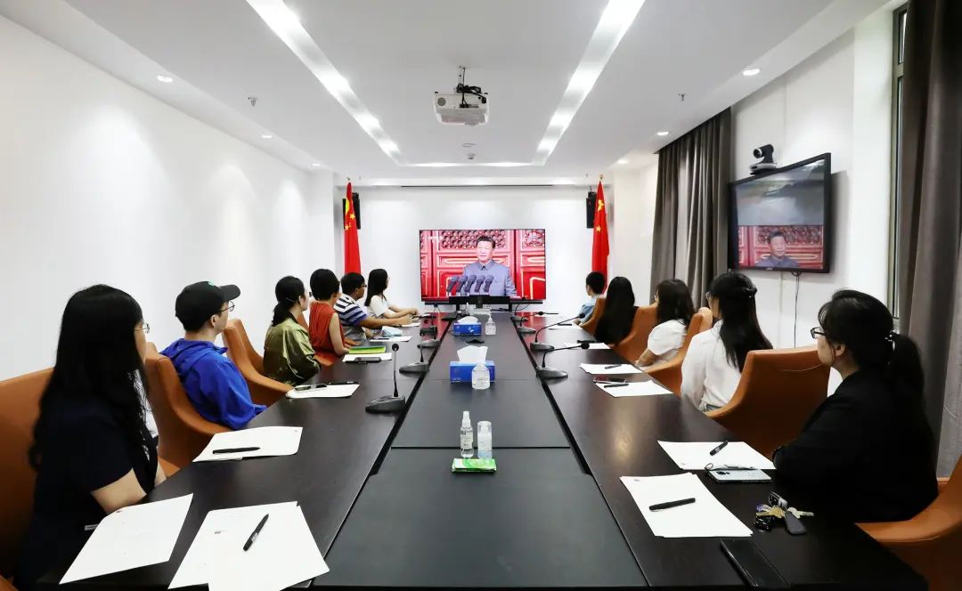 7月1日上午,庆祝中国共产党成立100周年大会在北京天安门广场隆重举行。中共中央总书记、国家主席、中央军委主席习近平发表重要讲话。北京语言大学一带一路研究院全体人员共同观看大会直播、学习习总书记讲话精神,并展开了热烈讨论。