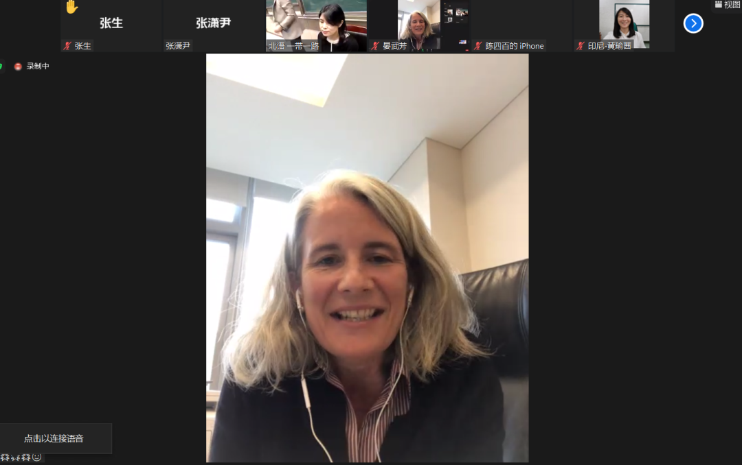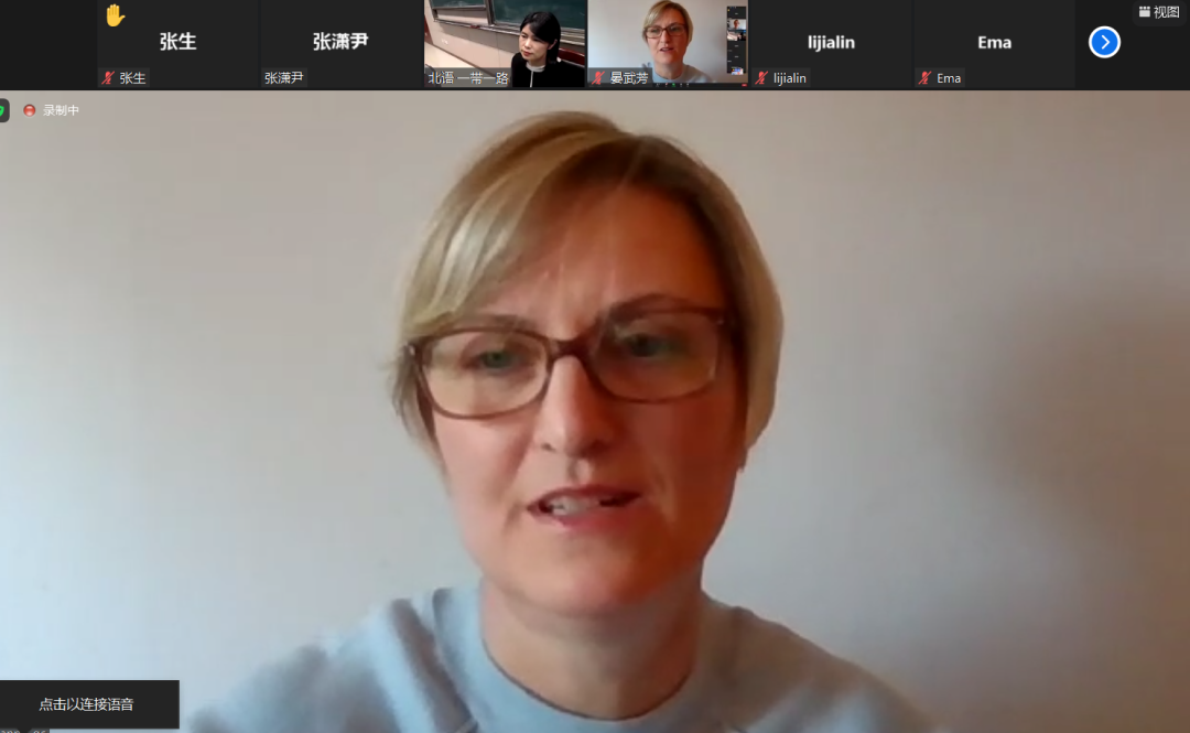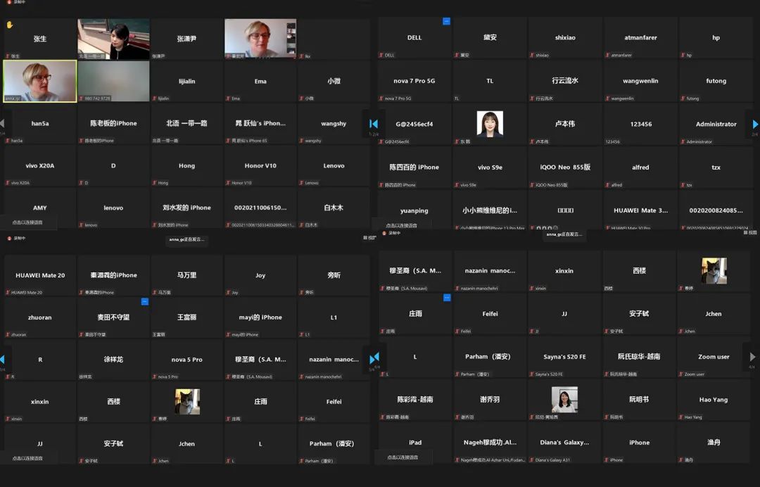 紧接着,现场展开了与瑞典翻译家陈安娜、法国翻译家谷维兰的视频互动。陈安娜是莫言、余华、刘震云、贾平凹、苏童等多位中国作家的译者,她用地道的中文回顾了她的翻译之路,分享了她翻译鲁敏长篇小说《六人晚餐》的难忘感受;同时也提出,由于生活和时代背景与瑞典读者距离较远,中文书籍在瑞典传播并不容易。陈安娜老师表示,希望有机会能多翻译一些中国年轻作家,尤其是女性作家的作品;并指出,文学翻译不仅是文化交流使者,同时也要付出巨大劳动,希望各个国家的译者都能得到相对稳定的职业回报。谷维兰老师则提到从事翻译与精神分析的共同之处,其心理学背景对翻译很有帮助;并强调翻译要把作品的风格、语言意蕴表达出来,使外国读者能有与中国读者相近的阅读感受。