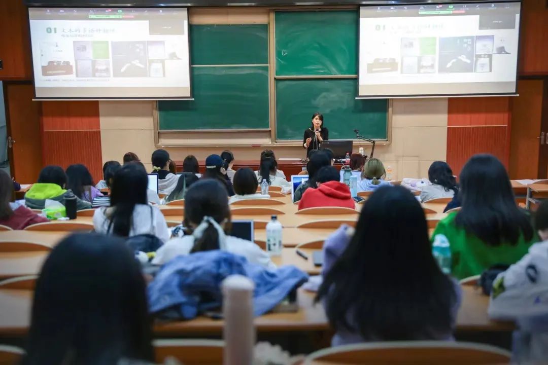决定留下灵感,可以通过怎样的技巧将它转化为具有独特魅力的文本?这首先与作家的自我定位相关。鲁敏老师分别分析了以版权改编为自我设定的IP型作家、以自我表达为诉求的作家,以及有着较高自我职业期许的经典写作型作家。进而,就经典作家的文本呈现方式讲解了写作技巧的四个阶段,即无技巧阶段、模拟技巧阶段、创造技巧阶段与最高境界的“屋漏痕”阶段。鲁敏老师又通过对多部小说的详细解说,引领同学们从人称叙事视角、时间轴处理、互文借鉴、感官技巧、悲喜剧调性等方面探索了第二阶段的写作技巧以及写作的温度与现代主义手法。最后,鲁敏老师通过分享自己写作的《六人晚餐》中“主人公如何死去”的写作趣事,探讨了写作中的瓶颈与突破,并告诉同学们:当在自己的工作与生活中遇到瓶颈时,同样要抱有乐观的处理方式,相信外部世界带来的某种改变会配合内心情绪的准备,最终促成事情达致应然的解决。