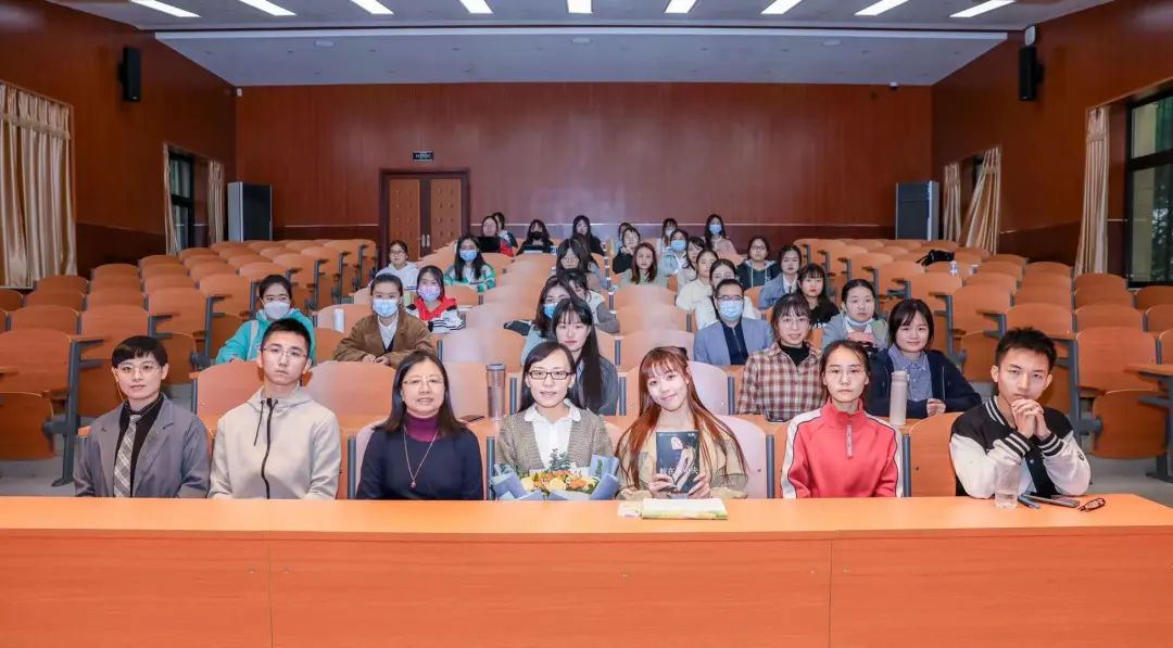 对谈环节,孙频老师与她的译者著名丹麦文学翻译家劳淑珍老师展开充分交流。劳淑珍老师是为数不多的几位能用中文写作诗歌的翻译家,双方就如何在翻译中恰如其分的表现小说独特的气质这一问题做了深入探讨。劳淑珍老师认为,只有深入作家的内心世界,拓展自己的感受框架与作者达到情绪共鸣,才能将异域的读者带入作者的语境,体会作者通过作品而给予的人文关怀。最后,孙频老师与劳淑珍老师声情并茂地双语朗读了《松林夜宴图》的部分段落,课堂气氛再度热烈,大家深受感染。