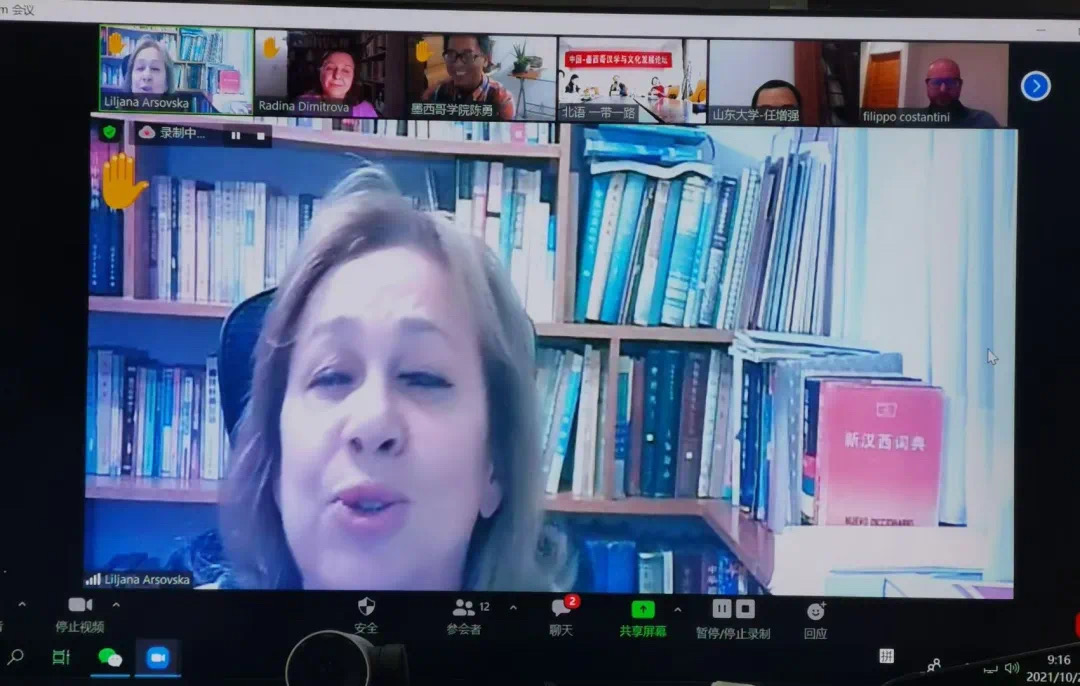 北京语言大学一带一路研究院常务副院长、中国文化译研网(CCTSS)国家工程负责人徐宝锋教授主持了此次线上会议。论坛中方出席人员为西南交通大学外国语学院俞森林教授,巴西孔子学院院长乔建珍副教授,山东大学国际汉学研究中心任增强副教授,北京语言大学一带一路研究院院长助理胡燕春副教授,北京语言大学一带一路研究院教师陈映锦博士、陈莹博士、周菲菲博士。墨方出席人员为墨西哥学院亚非研究中心中国专业教授Liljana Arsovska(莉莉安娜),墨西哥国立自治大学语言、语言学与翻译学院翻译专业中西翻译方向教授Radina Dimitrova(拉蒂纳),哥斯达黎加大学哲学系教授Filippo Costantini(菲利普),墨西哥学院亚非研究中心中国专业教授Chen Yong(陈勇)。