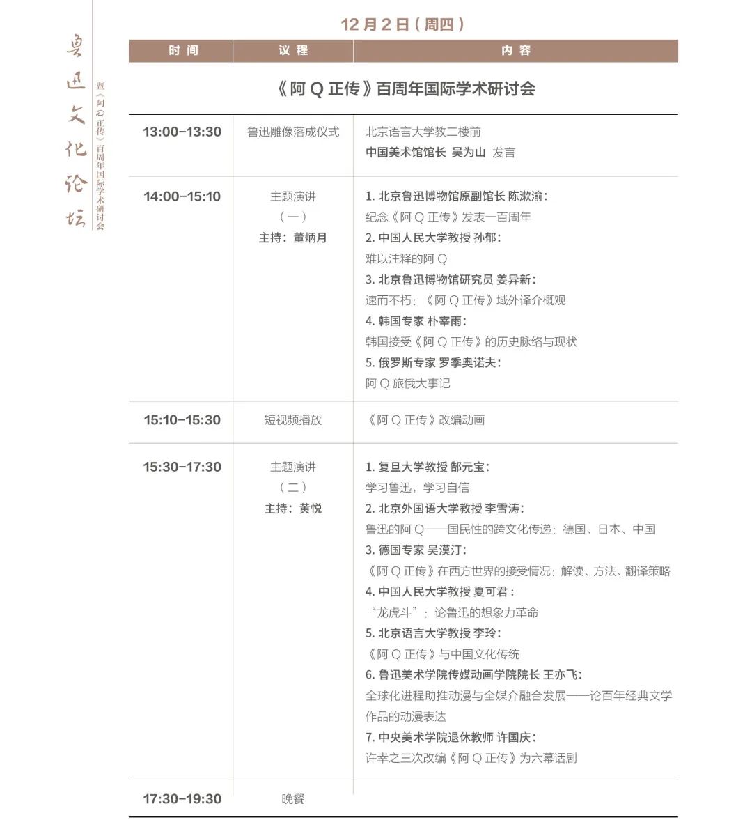 为纪念鲁迅诞辰140周年,鲁迅作品 《阿Q正传》《故乡》发表100周年,由北京语言大学、鲁迅文化基金会主办,北京语言大学鲁迅与世界文化研究院承办,中国文化译研网(CCTSS)平台支持的“鲁迅文化论坛暨《阿Q正传》百周年国际学术研讨会”将于2021年12月2日至3日(周四至周五)在北京语言大学召开。