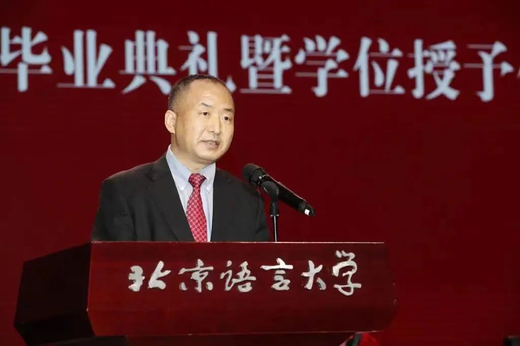 首先,祝贺你们!祝贺你们一路耕耘,终获累累硕果,多年砥砺,今日修得学业圆满!从明天起,你们将纵横四海,用你们的所学,用你们的智慧和汗水去谱写更加壮阔的人生。作为老师,非常欣慰能有幸在北京语言大学开放、包容和国际化的氛围下见证你们的成长和进步,也非常期待能在未来的日子里听闻你们的捷报频传。人生最恨伤别离,此刻我和你们一样,内心泛着丝丝分离的惆怅与不舍,但更多洋溢着的是对莘莘北语学子们在未来广阔人生舞台上鲲鹏展翅、建功立业的辉煌的美好憧憬。向未来,我已然看到共和国的大地上又多了一群挥汗如雨的奋斗者,中华民族伟大复兴的事业中又增加了一批饱读诗书的追梦人。以梦为马,逐光前行!你们将肩负起北语人的使命,“讲述中国,亲睦世界”。衷心地希望,在未来的日子里,你们在祖国960万平方公里的土地上大展宏图,在世界文明互融互鉴的百花园里谱写出新的华章。