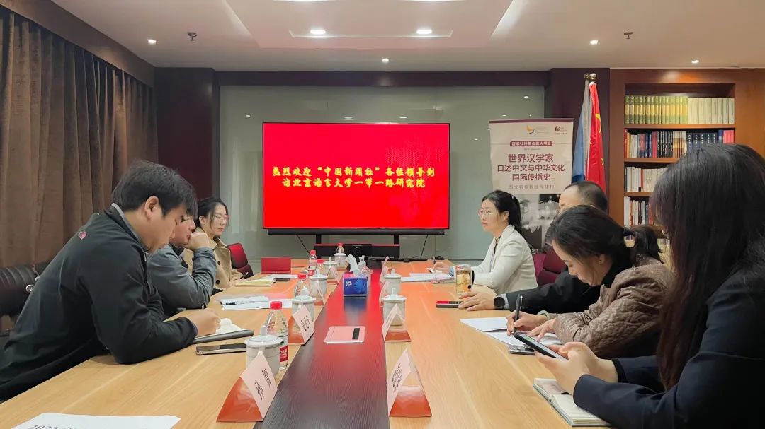 2022年10月27日,中国新闻社海外中心主任黄耀柏,原创部主管史元丰,新媒体部主管萨日娜,全球融媒体编辑室副主管吴峥一行到访北京语言大学“一带一路”研究院,与北京语言大学“一带一路”研究院院长、世界汉学中心主任徐宝锋教授,北京语言大学“一带一路”研究院副院长黄悦教授等进行会谈。