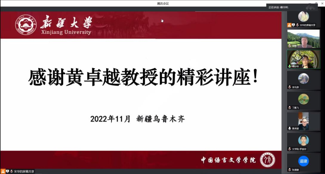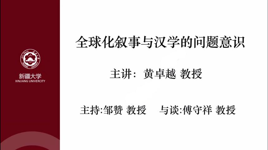 11月6日下午15点30分,北京语言大学教授,学科带头人,国际汉学研究所所长。兼中国文化对外翻译与传播研究中心主任受新疆大学中国语言文学学院、中国文艺评论(新疆大学)基地、新疆文献研究中心之邀,在线上做了一场题为《全球化叙事与汉学的问题意识》的讲座。