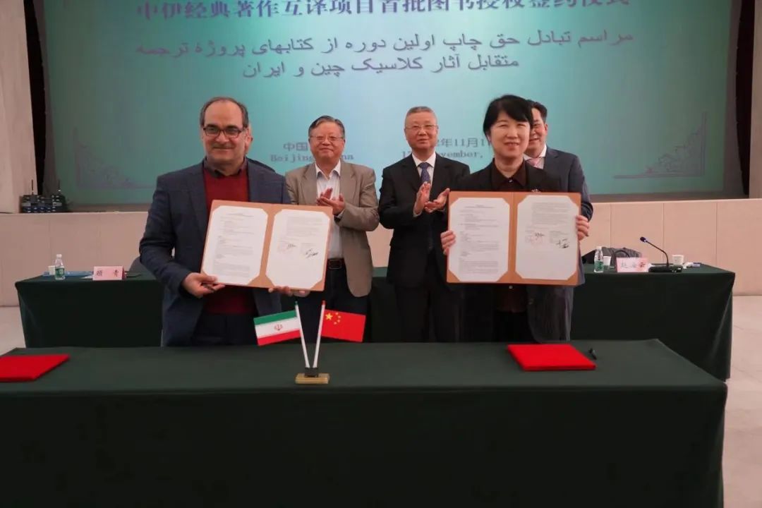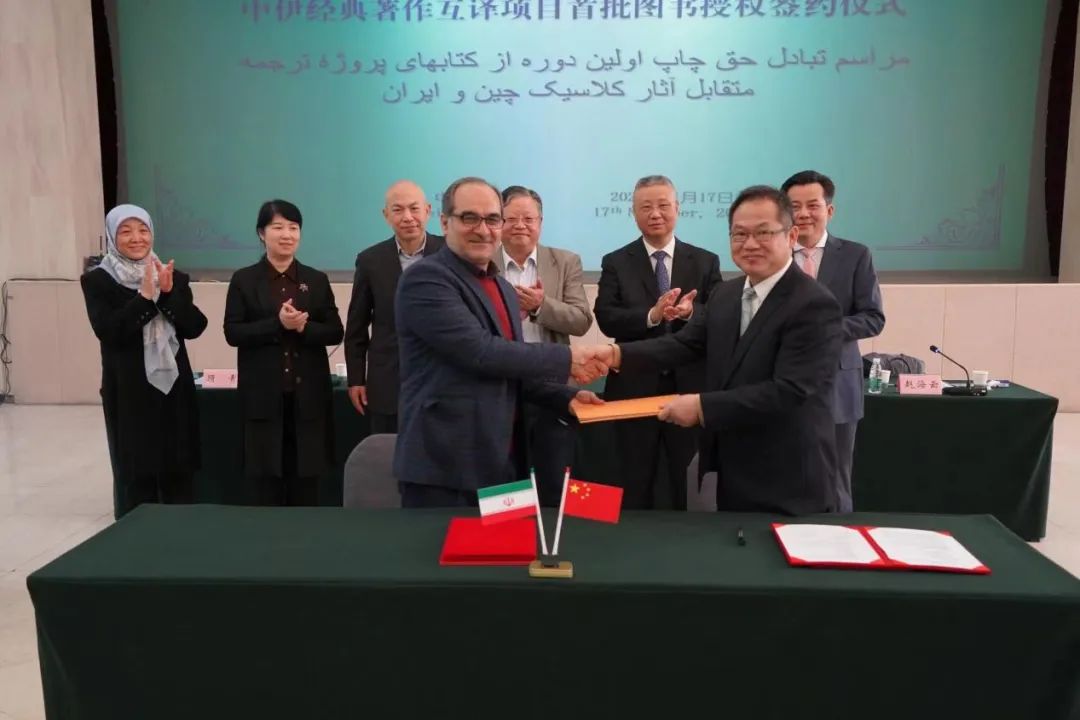 本次签约仪式涉及“中伊经典著作互译计划”首批8本图书,包括引进图书《波斯语教程》(承办社:商务印书馆)、《苏赫拉瓦尔迪论艺术与美学哲理》(承办社:商务印书馆)、《伊斯兰文明中的艺术史》(承办社:商务印书馆)、《心血化作红宝石》(承办社:西南大学出版社),输出图书《老子》(承办社:中华书局)、《论语》(承办社:中华书局)、《孟子》(承办社:中华书局)、《我是花木兰》(承办社:中国人民大学出版社)。