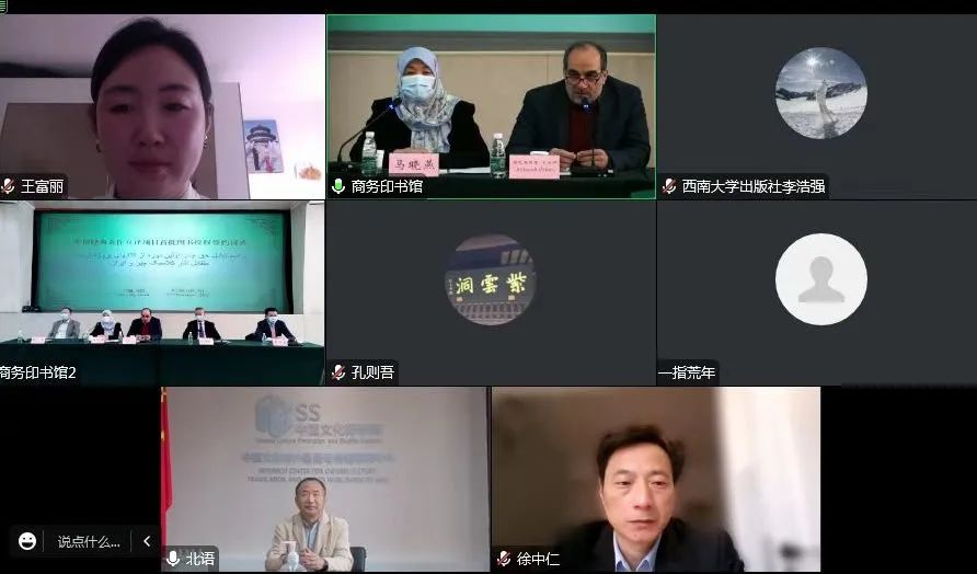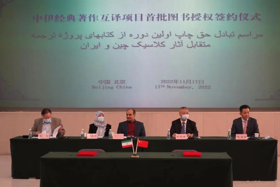 11月17日,“中伊经典著作互译计划”首批图书授权签约仪式在商务印书馆举行,中宣部进出口管理局副局长、一级巡视员赵海云,伊朗驻华大使馆文化参赞阿巴斯阿里·瓦法伊,伊朗驻华大使馆文化处干事马晓燕,商务印书馆执行董事商务印书馆执行董事顾青,商务印书馆总编辑陈小文出席并发言,中华书局副总经理林佳红,中国人民大学出版社副社长王磊,西南大学出版社副社长徐中仁,亚洲经典著作互译计划专项工作办公室秘书处以及各社代表参会。北京语言大学“一带一路”研究院院长徐宝锋教授线上出席活动。