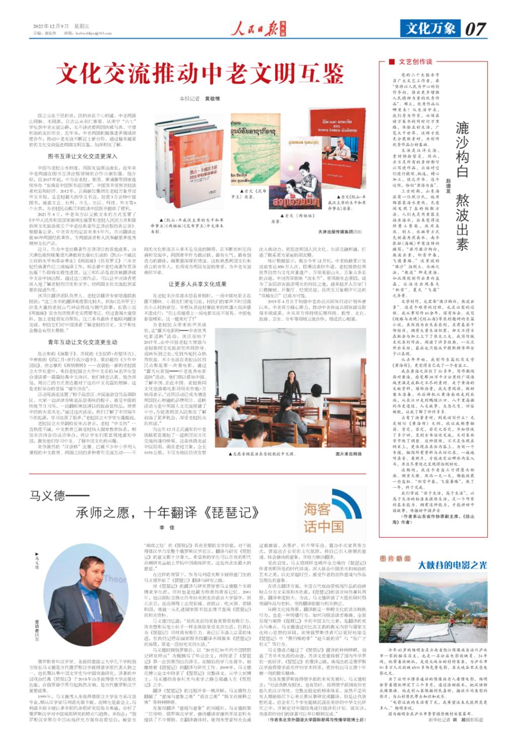 2022年12月9日,由国家社科基金重大项目“世界汉学家口述中文与中华文化国际传播史”及北京高校卓越青年科学家计划“一带一路汉学话语体系研究”项目提供学术支持的汉学访谈《马义德——承师之愿,十年翻译〈琵琶记〉》一文刊载于《人民日报》(海外版)第7版。