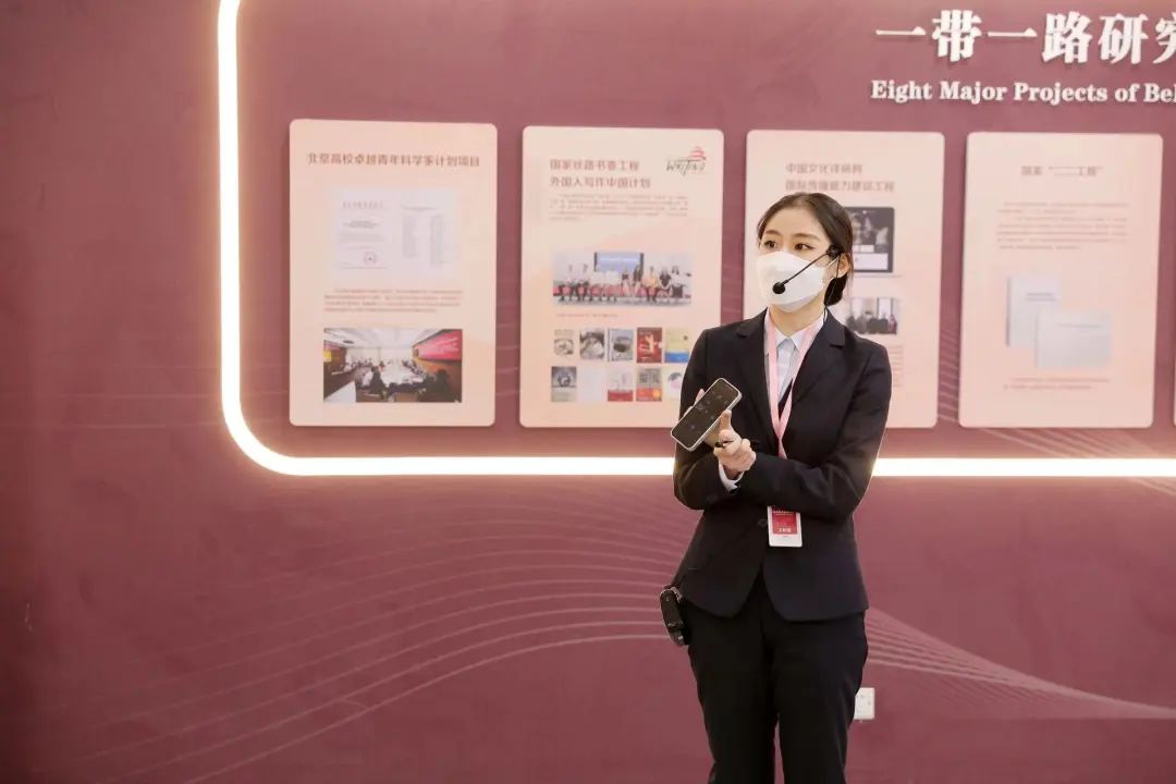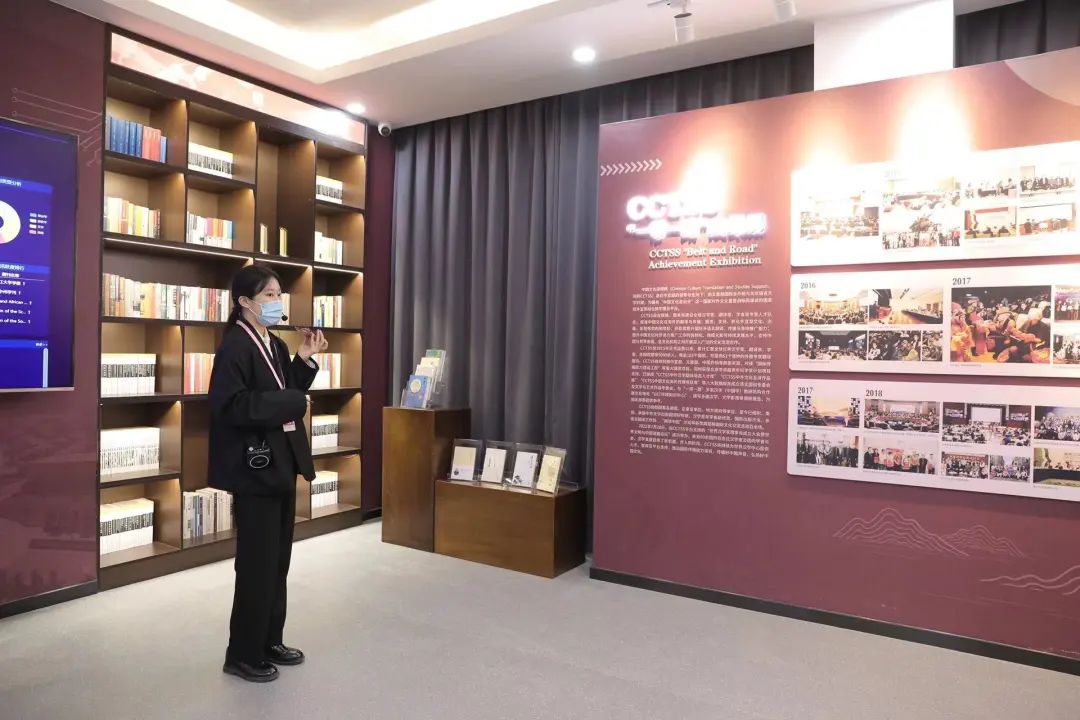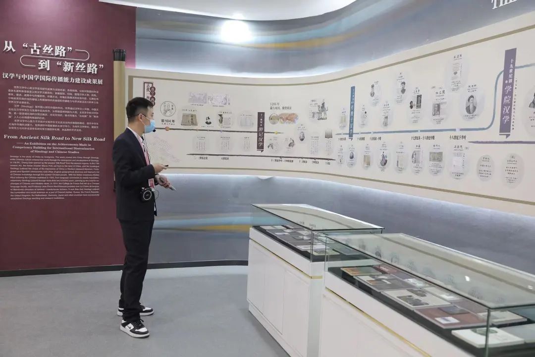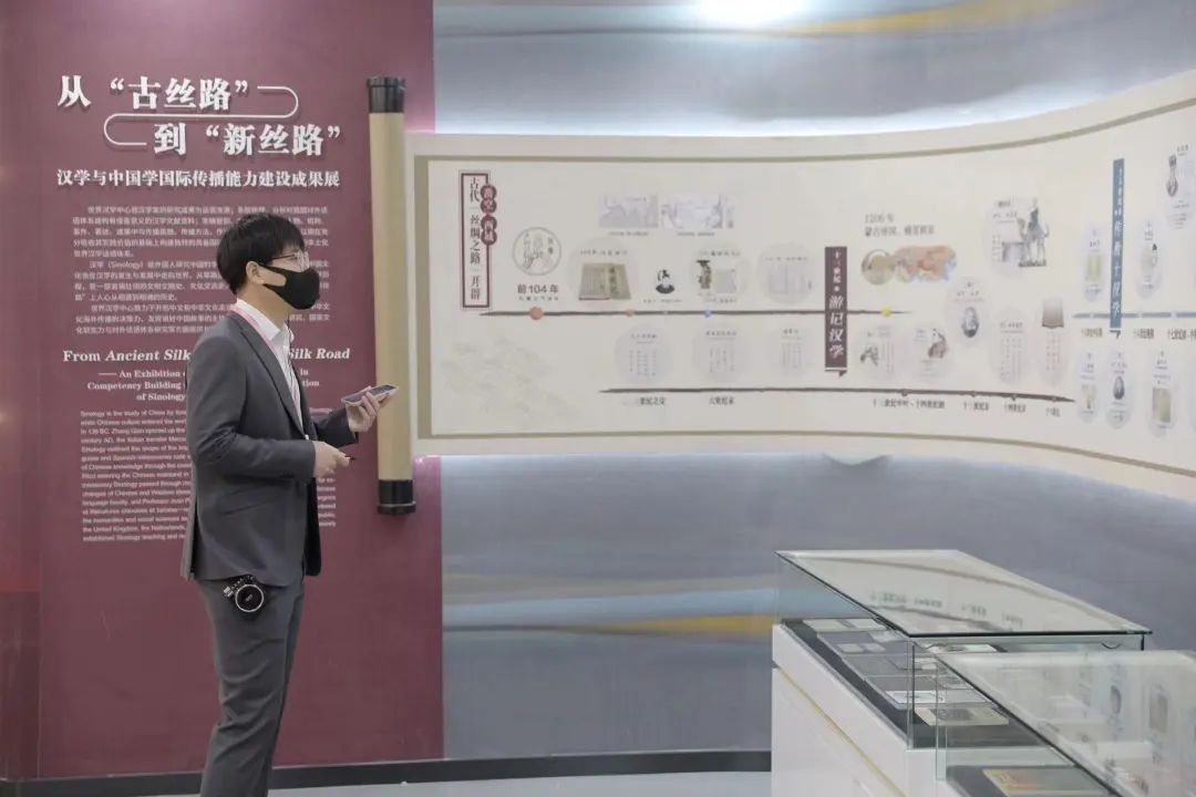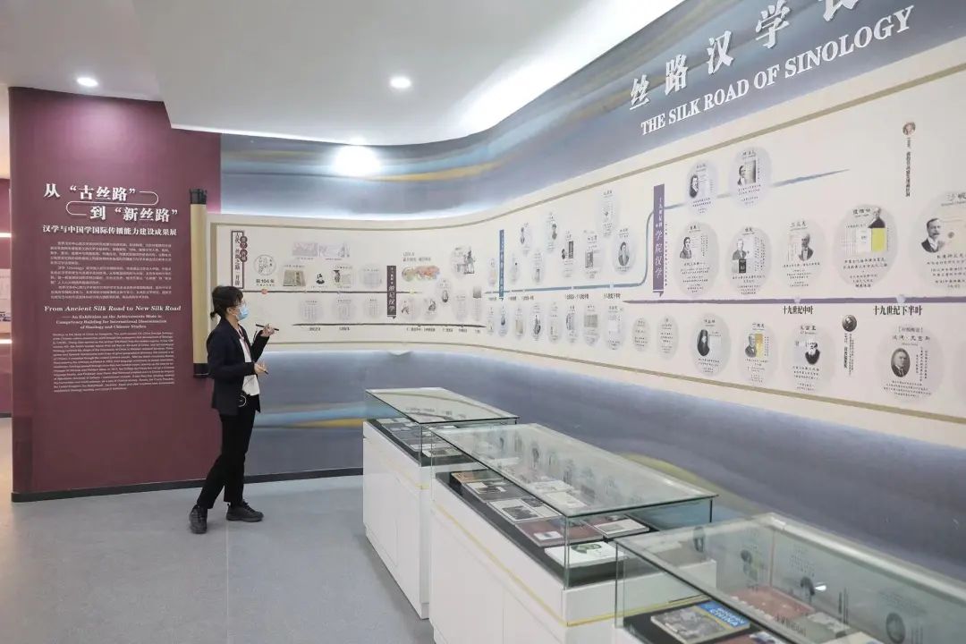 汉学与中国学国际传播能力建设成果展由汉学丝路长卷、汉学家与青岛、CCTSS“一带一路”成果展、中国影视多语言译制与传播成果展、一带一路研究院八大工程五部分组成。