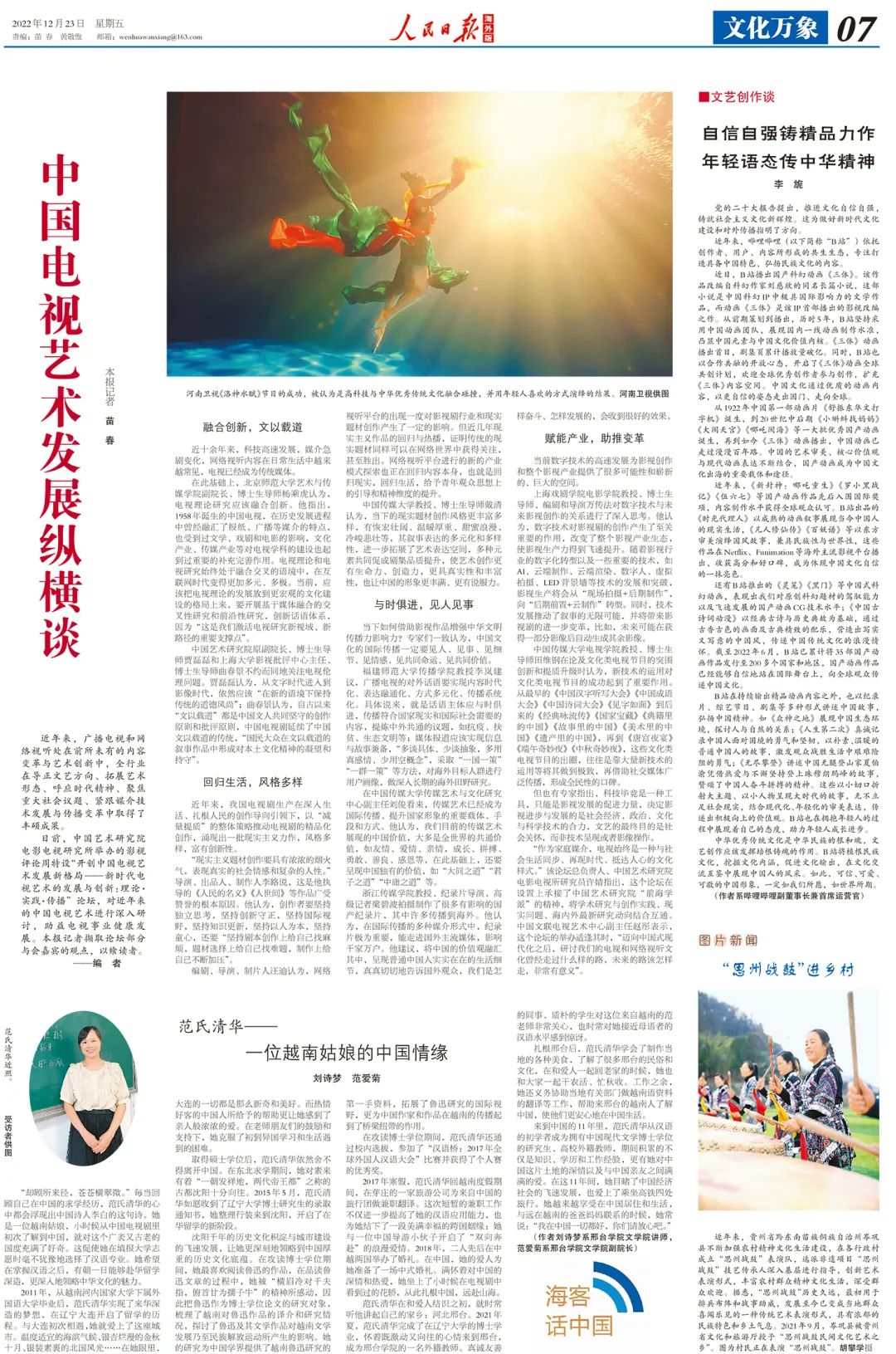 2022年12月23日,由国家社科基金重大项目“世界汉学家口述中文与中华文化国际传播史”及北京高校卓越青年科学家计划“一带一路汉学话语体系研究”项目提供学术支持的汉学访谈《范氏清华——一位越南姑娘的中国情缘》一文刊载于《人民日报》(海外版)第7版。