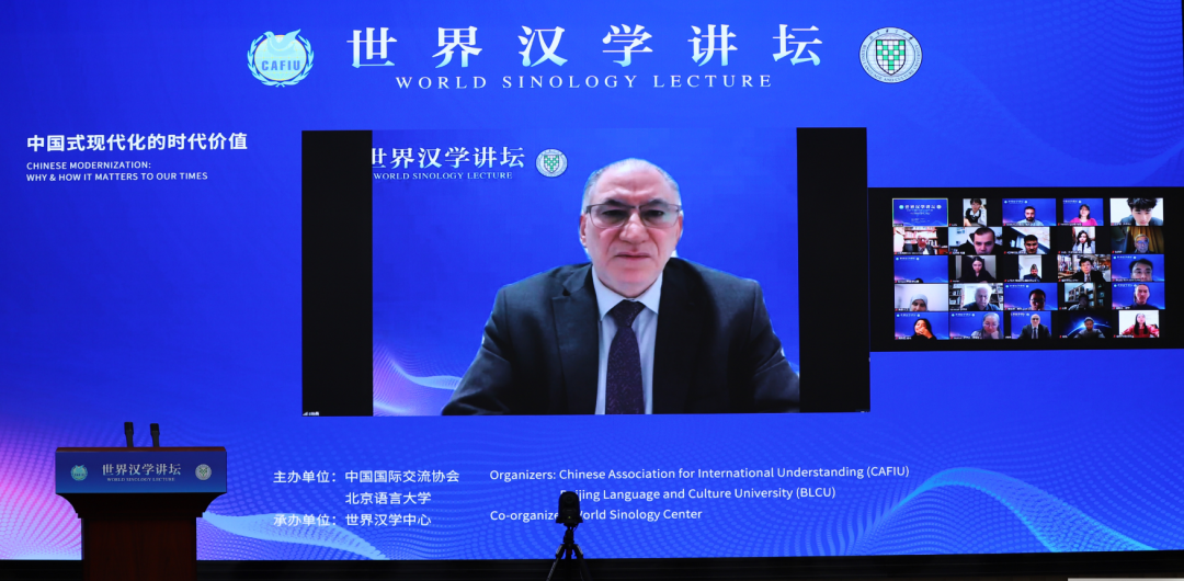 本次开幕式由中国国际交流协会副秘书长王珂和北京语言大学一带一路研究院院长、世界汉学中心主任徐宝锋主持,中国国际交流协会副会长刘洪才,约旦驻华大使胡萨姆·侯赛尼,北京语言大学校长刘利等分别致辞;阿塞拜疆共和国驻华大使馆临时代办艾亚尔·胡欣诺夫,清华大学苏世民书院常务副院长潘庆中,北京语言大学特聘教授、《国际汉学》主编张西平,北京外国语大学国际关系学院教授、博士生导师李永辉出席;阿塞拜疆汉学家、前总统战略研究中心亚洲国家内外政策首席顾问拉沙德·卡里莫夫(RashadS.Karimov),澳大利亚汉学家、格里菲斯大学教授马克林(ColinMackerras),丹麦汉学家、丹麦前驻上海总领事曹伯义(CarstenBoyerTh?gersen),约旦汉学家、约旦侯赛因·本·塔拉尔大学媒体与战略研究系教授哈桑(HasanAbdullahAl-Dajah),蒙古国汉学家、蒙古国中国历史文化研究会会长浩·巴特尔夫(BaatarkhuuKh.),俄罗斯汉学家、俄罗斯俄中友好协会副主席、莫斯科国立国际关系大学教授李克金(AlexeyN.Aleksakhin),美国阿斯本研究所研究员肖克(KARIMALWADI),美国汉学家、对外经贸大学国际经济贸易学院教授阳和平(FredEngst),英国汉学家、中国政府友谊奖获得者柯马凯(MichaelCrook)发表了主旨演讲。