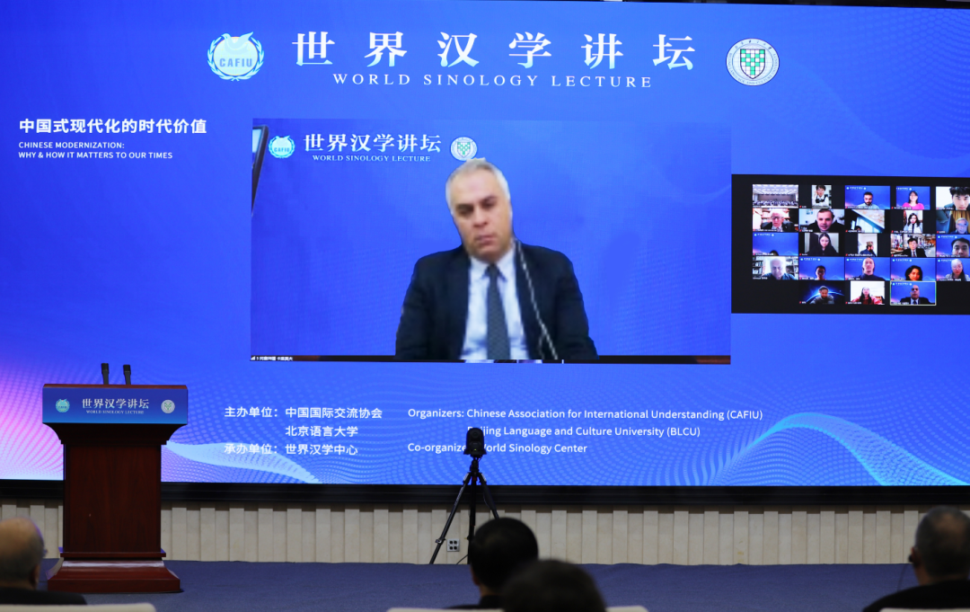中国国际交流协会副会长刘洪才在致辞中指出,中国式现代化是中国共产党领导的社会主义现代化,既有各国现代化的共同特征,更有基于自身国情的中国特色。汉学家作为中华文明的长期研究者,对中国式现代化的内涵、特征和意义有着精深的见解,相关阐释和解读有助于世界对中国式现代化的理解和认知。希望“世界汉学讲坛”发挥汉学家优势,从不同角度解读中华文明,点亮中国理念、中国主张、中国智慧的“明灯”,促进不同文明交流互鉴和各国民心相通,为构建人类命运共同体、建设更加美好的世界作出积极贡献。