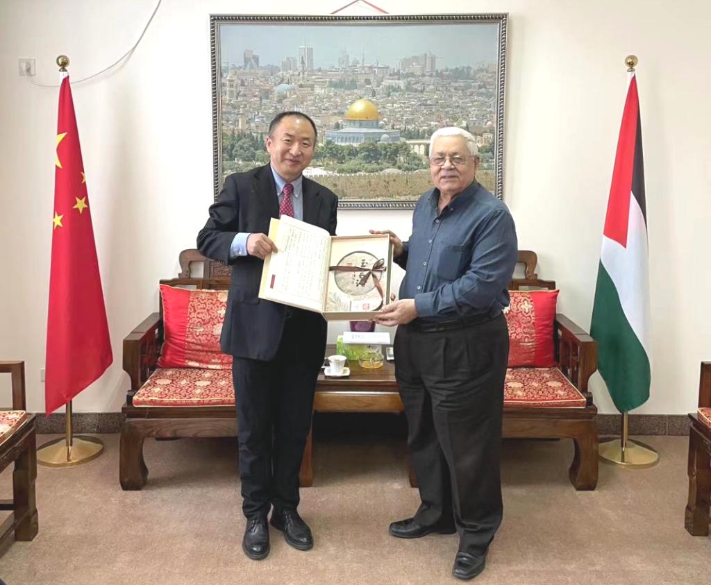 2023年4月20日,应巴勒斯坦驻华大使法里兹·马赫达维邀请,北京语言大学一带一路研究院院长、世界汉学中心主任徐宝锋教授一行到访巴勒斯坦驻华大使馆。双方就中巴经典互译项目事宜展开深入交流,并达成广泛共识。