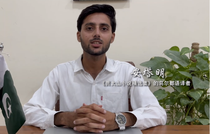 《贾大山小说精选集》的译者安塔明(AhtashamAbid)通过视频致辞,与在场来宾分享翻译作品背后的故事。