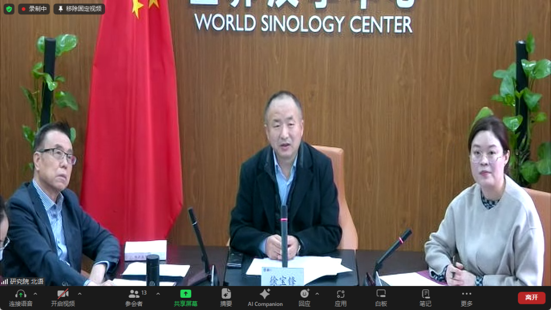 徐宝锋教授回顾了世界汉学家理事会的发展历程,并对克罗地亚汉学家们的加入表示热烈欢迎。他表示,克罗地亚汉学家理事会的成立将进一步完善世界汉学家理事会多元参与、内外协同工作机制,有效发挥“以学术促人文,以交流促理解”作用,为推动克罗地亚汉学发展和中克文明对话注入新的活力。