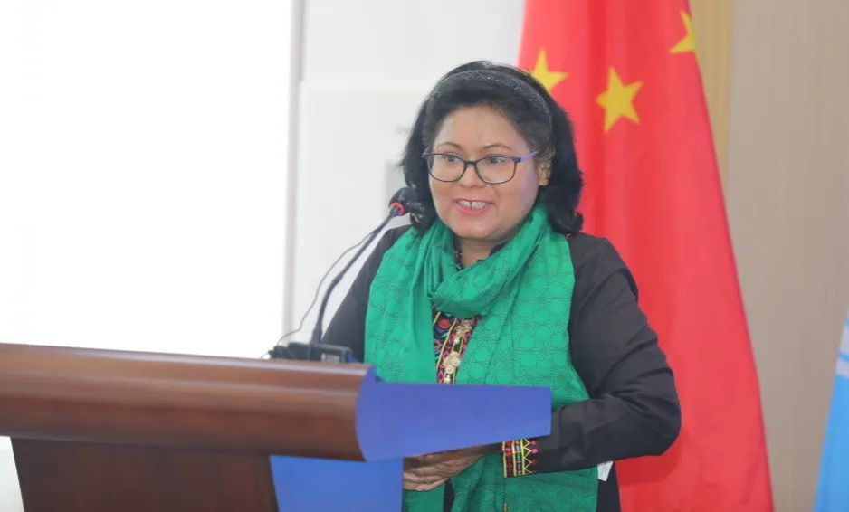 韩丽丽(Bushra Hanif)重点强调了乌尔都语的几个关键方面。她首先指出了语法和句式结构在语言表达中的核心地位,认为这两者是构建清晰、准确句子的基础。她进一步提到,成语作为语言中的精华,富含深厚的文化底蕴,掌握成语对于提升语言表达的丰富性和精准性至关重要。此外,韩丽丽还强调了复合词和专业词汇的重要性。她提倡多读自己写的作品,通过回顾和反思来发现可能存在的错误。同时,她也强调了找他人审阅作品的重要性,因为这样可以从不同的角度获得反馈,更全面地提升自己的语言水平。