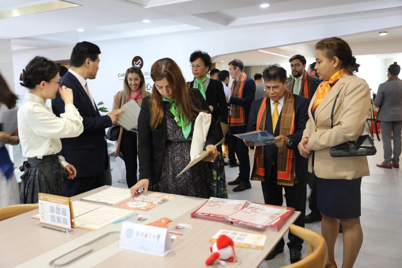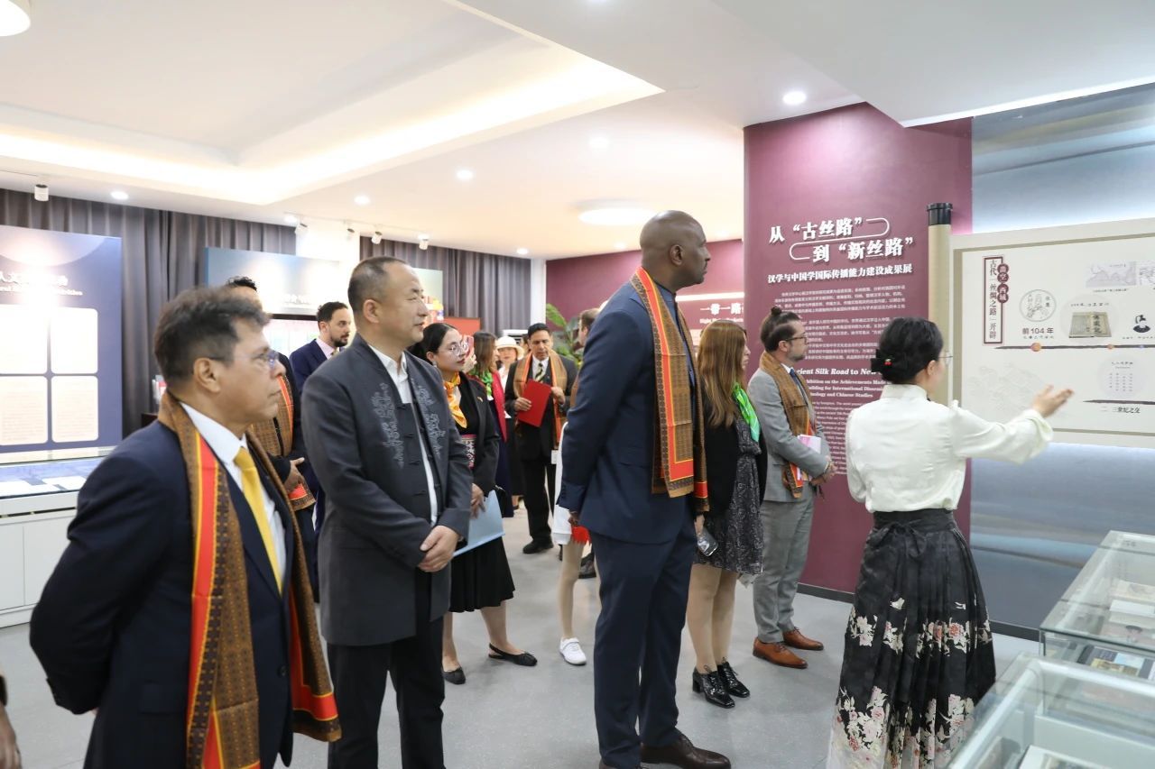 启动仪式后,使节团与中外嘉宾共同参观“汉学与中国学国际传播能力建设成果展”和“为了共同的明天—中拉汉学季”专题艺术展。本次专题艺术展由世界汉学中心联合十国驻华大使馆、新区实验初级中学等十余所中小学特别呈现。“为了共同的明天—中拉汉学季”专题艺术展,以文化艺术展演的形式呈现中国与拉美和加勒比国家丰富多元的文化艺术形式和深厚人文底蕴。