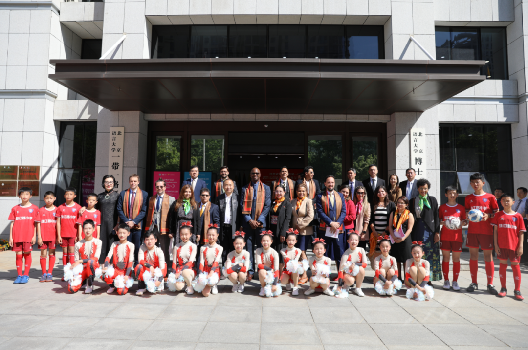 使节们、新区教体局、驻区高校国交部门查阅咨询北京语言大学国内国际招生简章等相关材料。