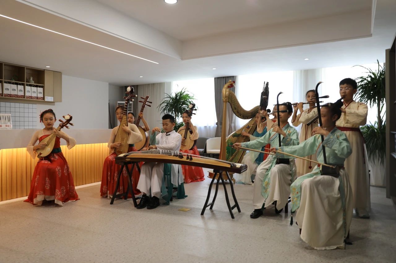 香江路二小民乐团在专题艺术展现场进行《茉莉花》《红楼梦》《牧羊曲》等经典曲目演奏。