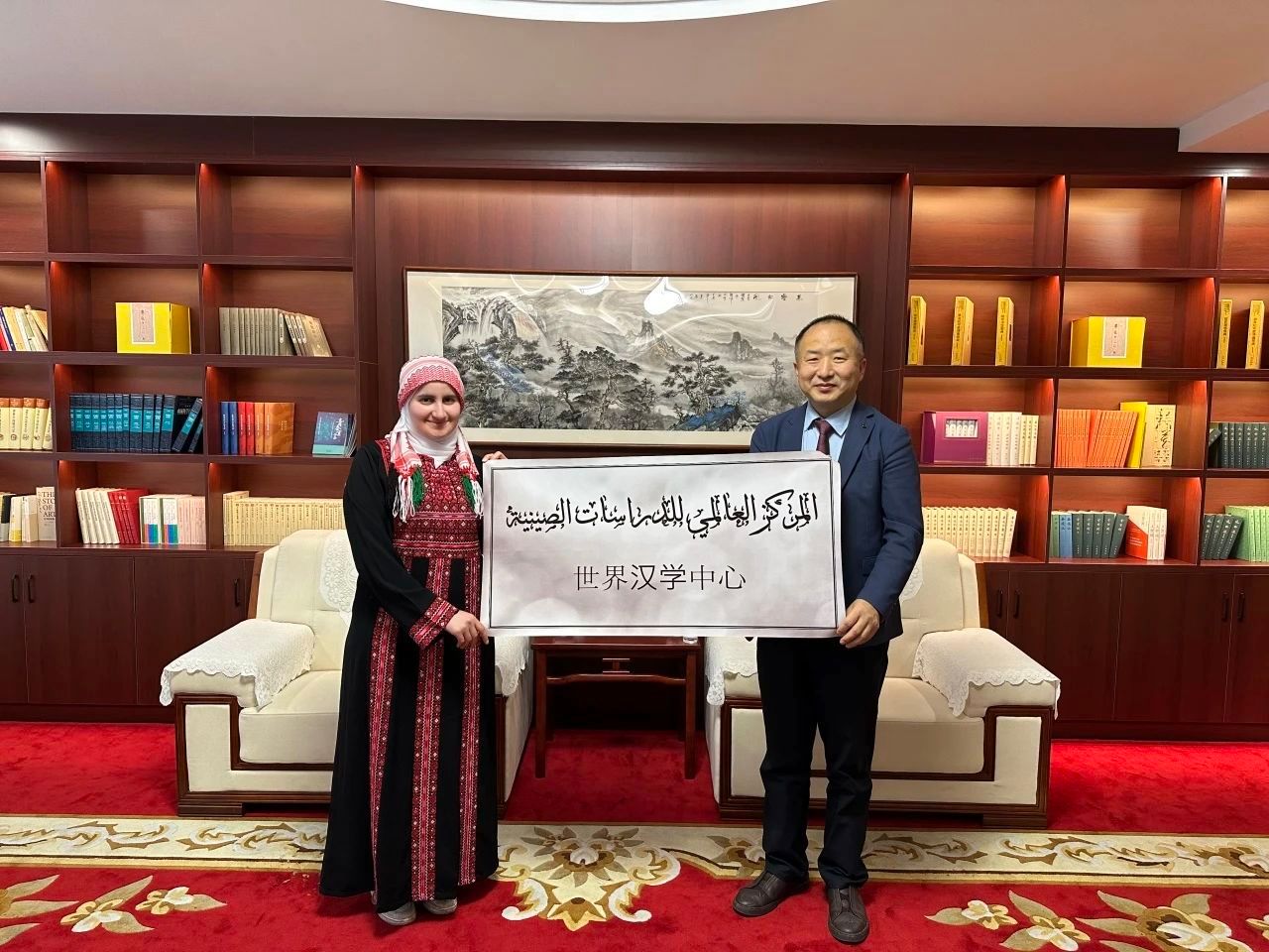 马娜(Manal Majdi Abdullatif Al-Khammash)入驻世界汉学中心期间向中心赠送阿拉伯语书法。