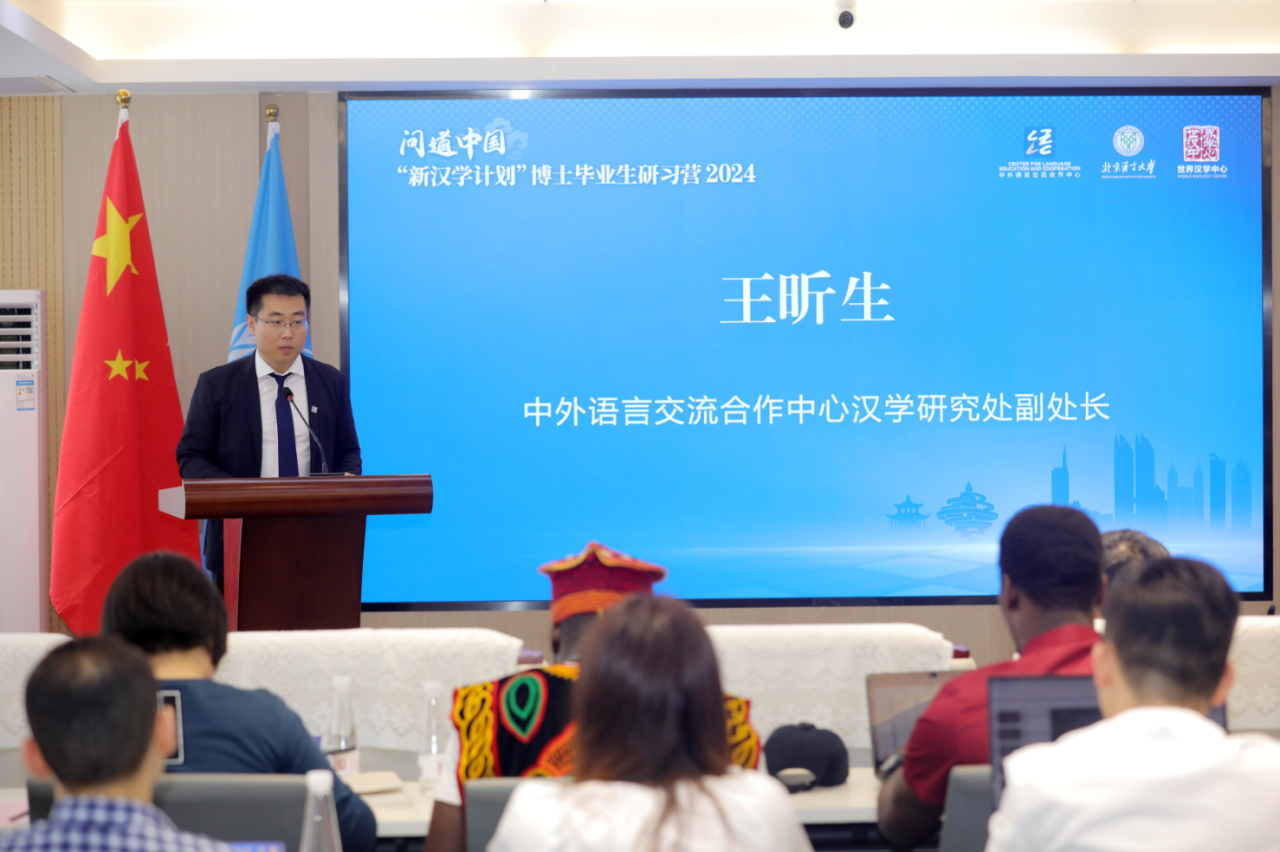 中外语言交流合作中心汉学研究处副处长王昕生代表语合中心对即将毕业的“新汉学计划”博士生们表示祝贺,他回顾了“新汉学计划”自2013年启动以来的卓越成就,该计划立足于跨语言、跨文化、跨学科,已支持了来自97个国家的近千名学者。未来,“新汉学计划”将持续支持青年学者们的学术发展,希望各位博士们能成为推动中外文化交流的青年力量,将世界文化带入中国,将中国智慧传播到世界各地,推动各国文明之间的良性互动。