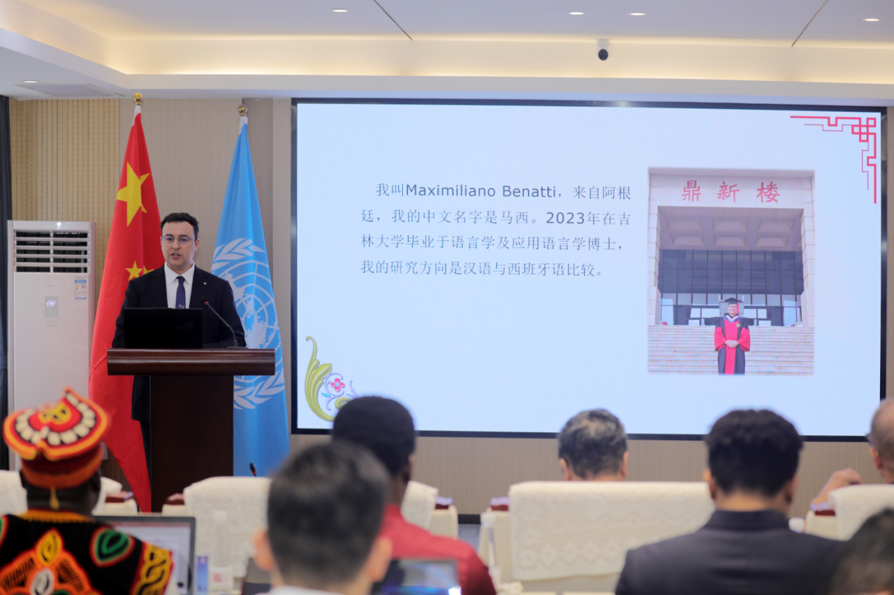 吉林大学语言学及应用语言学博士马西(Maximiliano Benatti),分享了他如何在地球另一端与中文结缘以及如何在导师的鼓励下走上学术道路的故事。他在模因论、认知语言学等理论的基础上,比较了中文与西班牙语词缀在语言和文化层面上的异同,研究针对两种文化的互相理解、中西文翻译以及汉语国际教育领域都有借鉴意义。