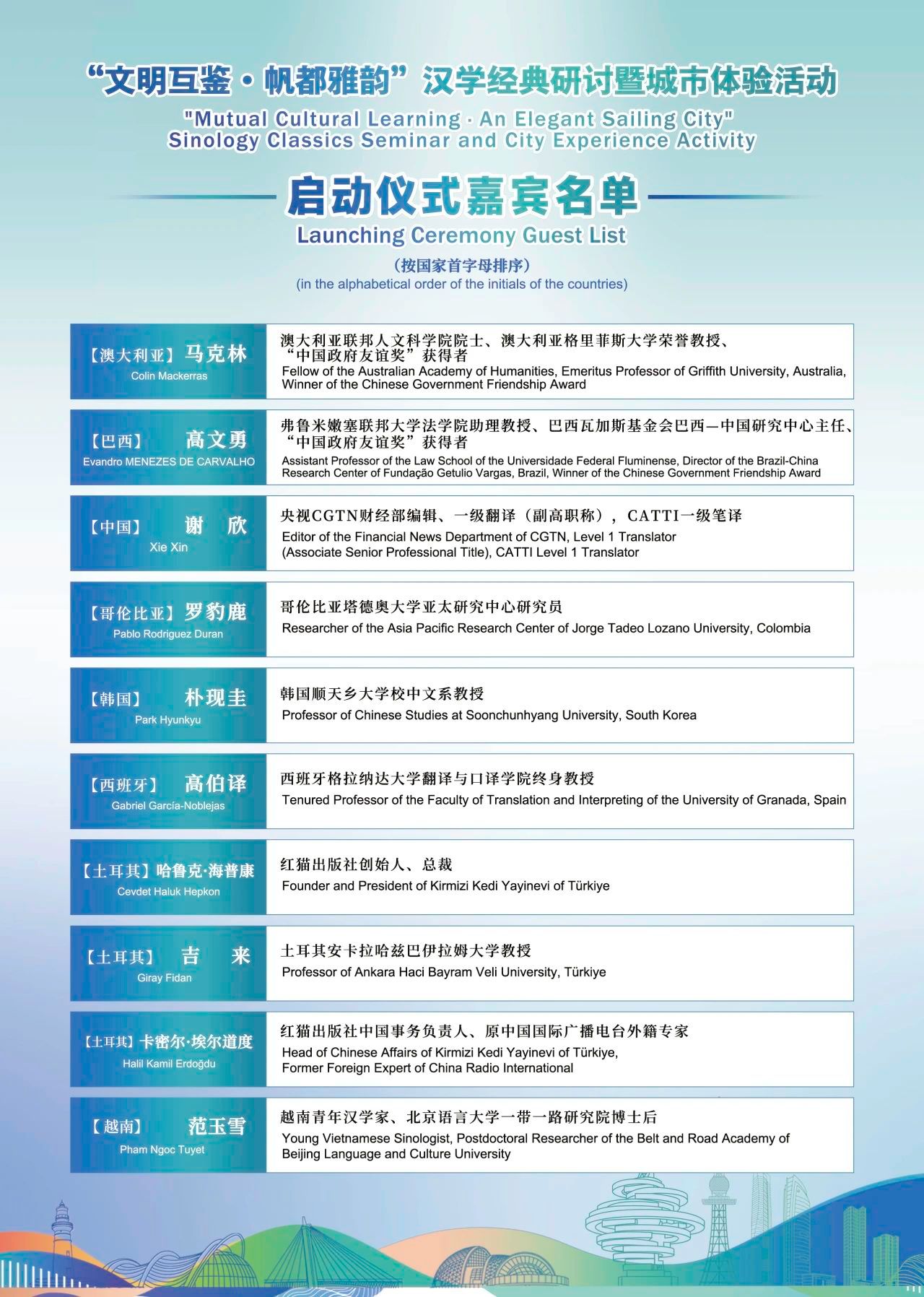 为落实国家出版基金“‘一带一路’汉学经典书系”项目、推进汉学研究事业的发展,北京语言大学世界汉学中心联合青岛日报报业集团共同举办“文明互鉴·帆都雅韵”汉学经典研讨暨城市体验活动,本活动将于2024年6月23日至26日盛大开启,诚邀澳大利亚、西班牙、土耳其、韩国、越南等多国汉学巨擘及国内翻译界精英,共聚世界汉学中心进行世界汉学经典研讨,对著作进行再次编译出版发布。