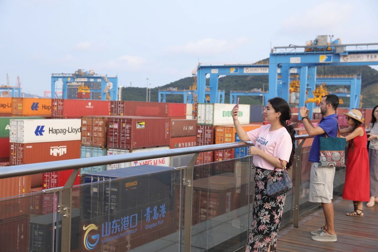 2023年9月,玛依娜(Imomzoda Mahina)入驻世界汉学中心期间,与多国汉学家一同参访青岛港自动化码头。