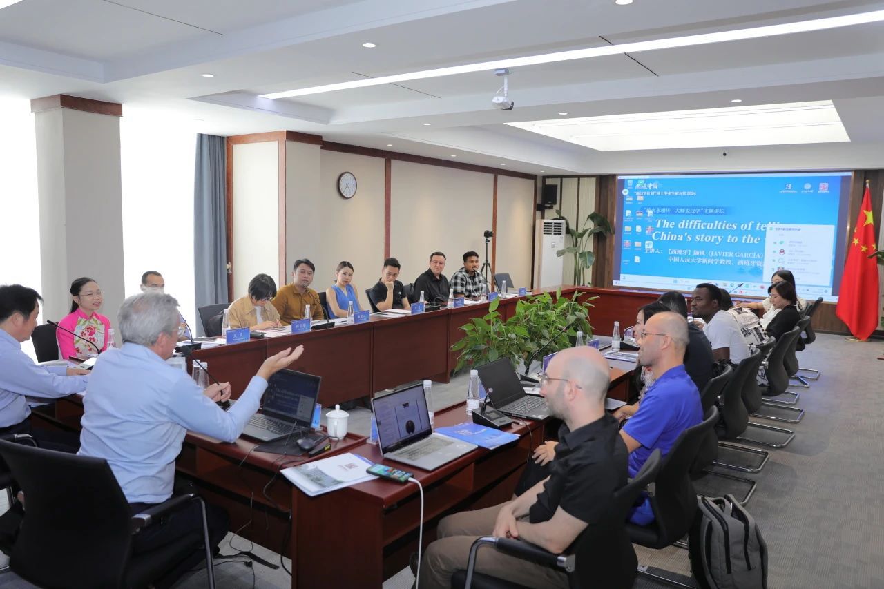 2024年6月17日至22日,由中外语言交流合作中心、北京语言大学合作举办,青岛世界汉学中心承办的“问道中国:‘新汉学计划’博士毕业生研习营”2024在青举办。作为“薪火永相传-大师说汉学”的首场主题讲坛,中国人民大学新闻学教授、西班牙资深国际记者随风(Javier García)带来The difficulties of telling China's story to the world 主题讲座,12个国家的15名“新汉学计划”博士毕业生参加讲坛并互动交流,世界汉学中心责任专家孙建华担任学术主持。
