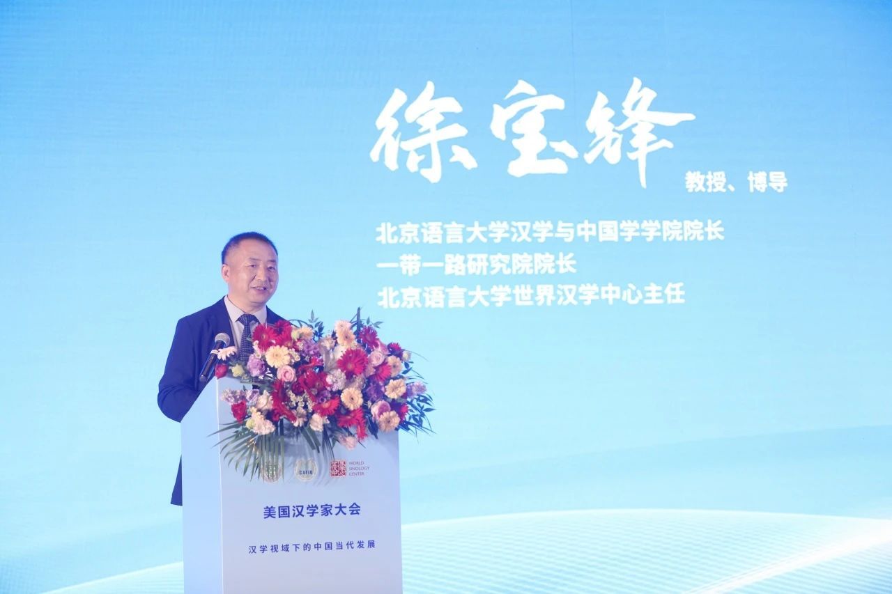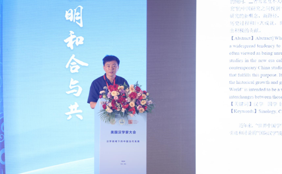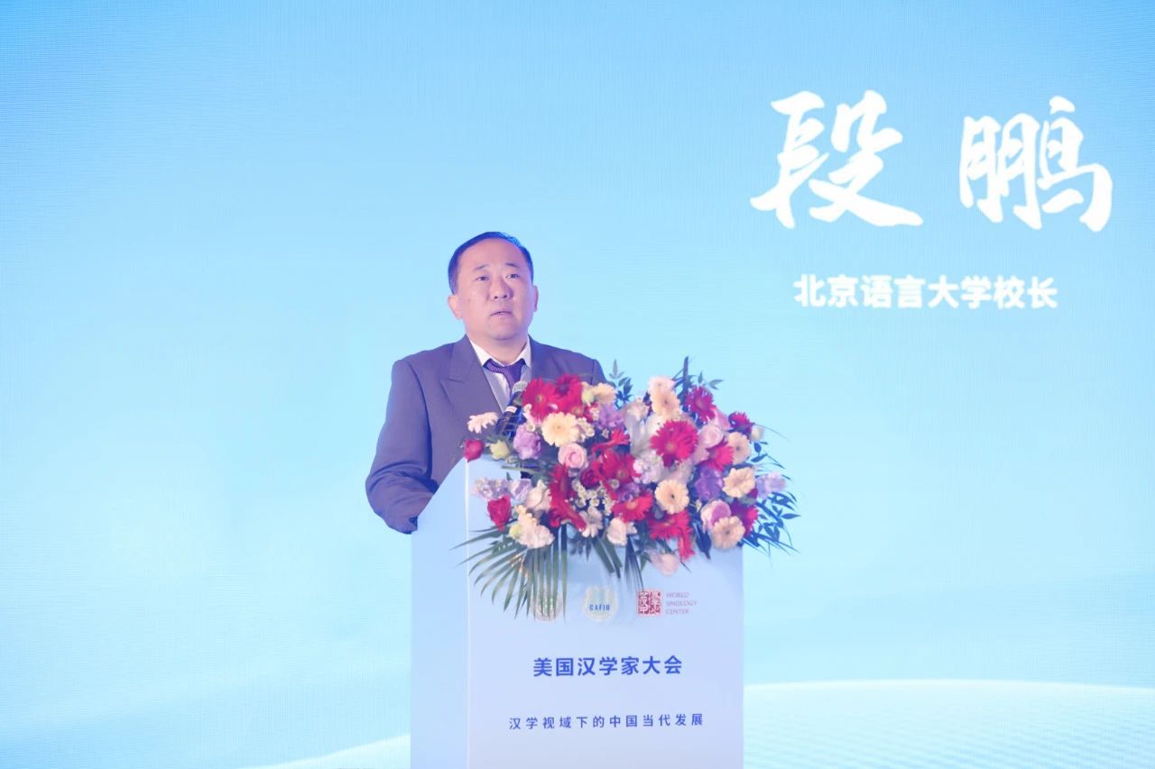 北京语言大学校长段鹏在致辞中表示,美国汉学与中国学界共同构筑了中美之间的深厚情谊与共同愿景。历代的美国汉学家和中国学者,凭借宏阔的学术视野和开放的学术胸襟,为汉学与中国学在新时代的转型开辟了崭新的学术格局。他强调,中国式现代化与中华文明相互赋能,期待与会学者能够通过深入对话,更加立体、全面地把握中国文化的基因,立足于中华文明深厚的历史渊源,共同探究中国新时代的发展方向。同时,他希望通过此次大会的成功召开,能够为中美两国的文化交流与合作搭建一个更加宽广的学术平台,为促进中美两国人民的相互了解和友谊贡献文化的力量。作为美国学生来华求学的重要高校代表和世界汉学家的摇篮,北京语言大学将继续深入贯彻习近平总书记贺信精神,持续推动学校中外人文交流工作续写新篇章、取得新进步,为更好促进文明交流互鉴贡献高校力量,为世界多元文明的繁荣发展做出努力。
