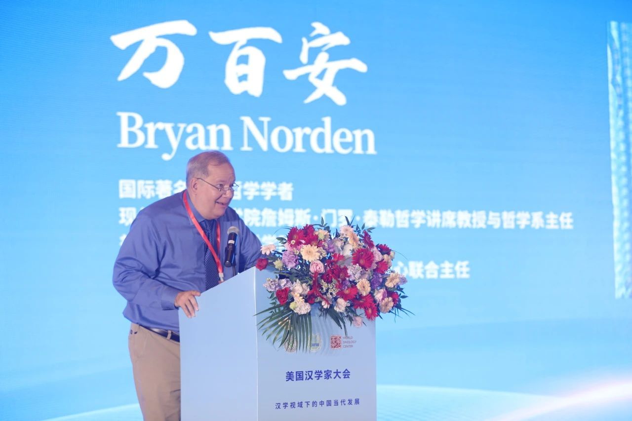 世界汉学家理事会美国汉学家理事会召集人万百安(Bryan W. Van Norden)代表与会的美国汉学家发表讲话。他表示,非常荣幸能以美国汉学家理事会召集人的身份,在大洋彼岸与众多美国主流汉学家齐聚一堂。他指出,当今世界正面临着诸多严峻挑战,阐明建设性知识分子的巨大力量和前景显得尤为重要。而作为知识分子的重要组成部分,汉学家们应当积极发挥其应有的作用,为促进不同文化之间的理解和交流贡献自己的力量,努力成为沟通不同文明的桥梁。