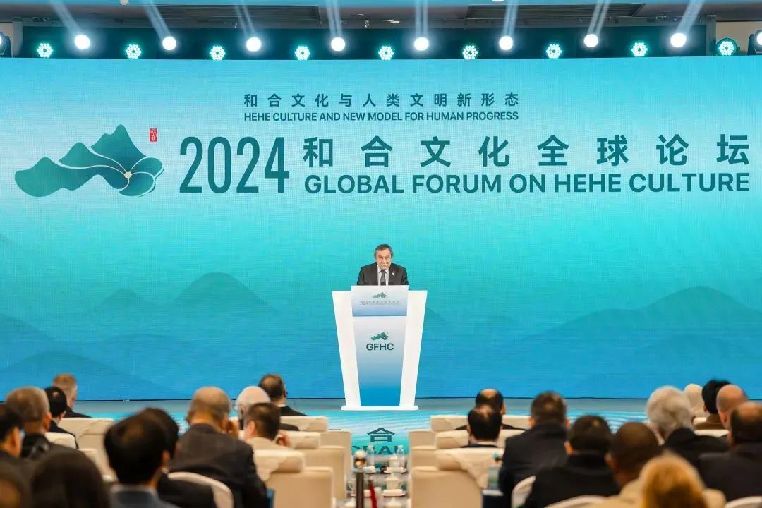 11月2日,由北京语言大学世界汉学中心协办的“2024和合文化全球论坛”在和合文化发祥地浙江台州举行。论坛以“和合文化与人类文明新形态”为主题,阐释中华文明精髓,分享中华文化智慧,践行全球文明倡议。全国政协副主席、民进中央常务副主席朱永新作特别致辞,浙江省委常委、统战部部长王文序,埃及前总理、兰花奖得主伊萨姆·沙拉夫,中国外文局副局长于涛,台州市委书记李跃旗作开幕致辞,浙江省委宣传部副部长、省人民政府新闻办公室主任虞汉胤主持开幕式。