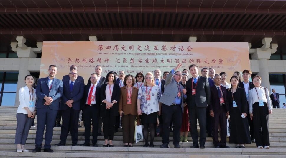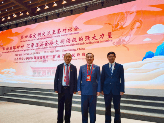 2025年5月30日,以“弘扬丝路精神汇聚落实全球文明倡议的强大力量”为主题的第四届文明交流互鉴对话会在敦煌开幕,国家副主席韩正出席开幕式并致辞。