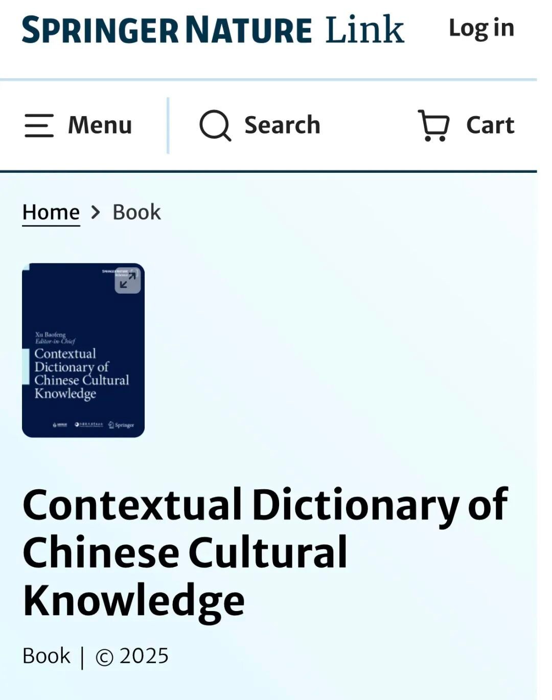 施普林格·自然集团在其官方网站推介词中写道:本辞典收录近1500个词条,以系统化、现代化的编纂理念,凝练呈现中国文化的核心知识体系。全书采用主题关键词分类架构,分为哲学思想、社会治理、文史掌故、艺术美学、人文地理、器物科技六大板块,既涵盖传统精髓,又包容多元信息,贯通历史脉络与当代发展。