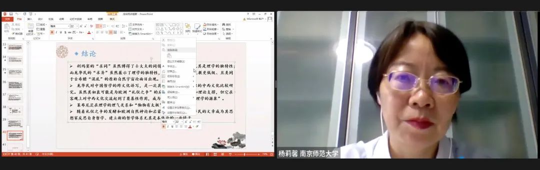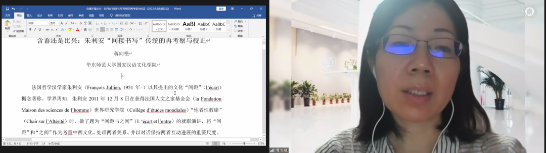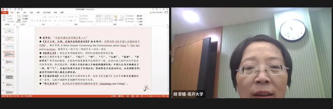 本场圆桌论坛由南开大学外国语学院教授、中华文化国际传播研究中心主任胡翠娥担任主持与评议。南京师范大学文学院教授杨莉馨、故宫博物院科研处李晨哲、浙江大学艺术与考古学院戴超群、上海外国语大学万聿及上海外国语大学英语学院聂士聪分别做学术报告。