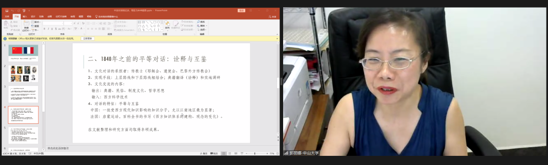 郭丽娜在以《中法对话的过去、现在与未来趋势》为题的发言中指出:自法国传教士来华促成早期中欧文化对话,到十九世纪后中法交流不断加深,推动全球化进程,再到改革开放后中法建立广泛学术合作从而开启新一轮有意义的对话,三百余年的中法对话从单一走向多面、从一方被动走向双方主动互动。未来的中法、中欧对话更需秉持“和而不同、求同存异”的原则,更主动地“走出去”,以包容的心态“迎进来”,围绕人类未来发展的主题加强对话,维护与促进多元文明共同发展。