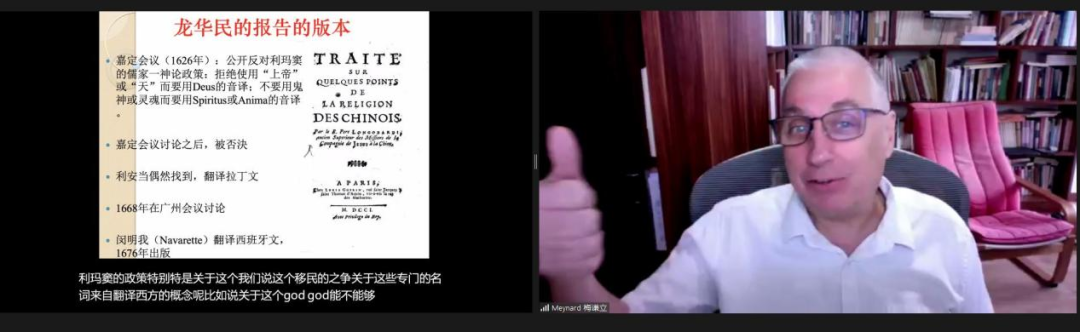 梅谦立在以《龙华民与宋明理学》为题的发言中指出:明末意大利来华传教士龙华民(NiccoloLongobardi)作为“保守主义”的代表,一方面认为前期传教士利玛窦(MatteoRicci)等人对“真儒古教”和“俗儒理学”的切分不符合中国儒家道统,另一方面又以宋儒视角理解整个儒家传统并使用亚里士多德哲学理论分析《理性大全》所载观点,得出宋儒思想是一种“唯物主义一元论”的结论,故对古今(宋)儒学均持排斥态度;在哲学格义与文化通约的过程中,“削足仍不适履”或是必经之路,而随着中欧双方文化同理心与文化共情力的提升,彼此的文化也将在深度的双向认同中获益。