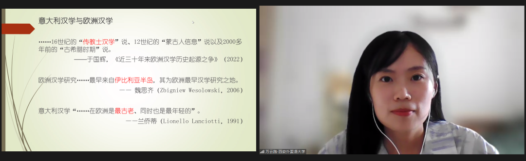 本场圆桌论坛由广东外语外贸大学中文学院教授陈恩维担任主持与评议。意大利米兰天主教圣心大学教授、孔子学院院长竺易安(ElisaGiunipero);上海外国语大学全球文明史研究所研究员唐均;斯洛伐克考门斯基大学东亚研究系中文讲师玛丽亚·伊斯特万诺娃(MariaIstvanova);中国政法大学国际教育学院副教授宋春香;华东师范大学国际汉语文化学院副教授蒋向艳;西班牙马德里康普顿斯大学文学院东亚研究系教师罗慧玲及黑龙江大学俄罗斯语言文学与文化研究中心王祎杉分别做学术报告。