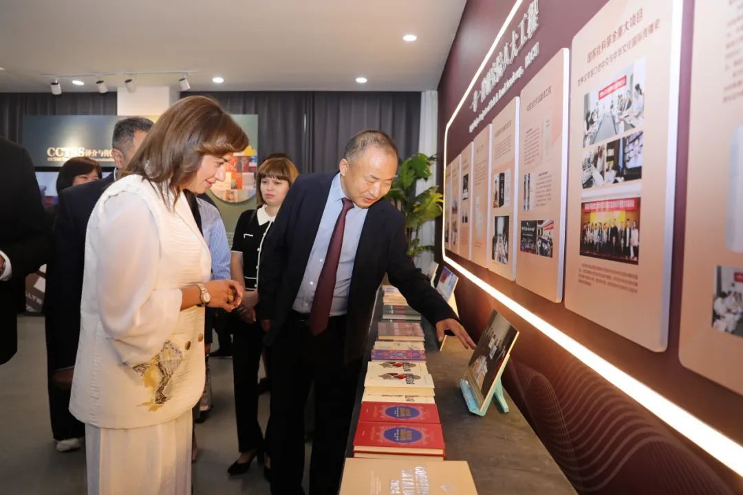 首先,安娜·哈科比扬夫人一行参观了“世界汉学与中国学术成果展”、中国—亚美尼亚经典互译出版成果展览,详细了解世界汉学中心发展历程和推动中亚文明交流互鉴工作成果。