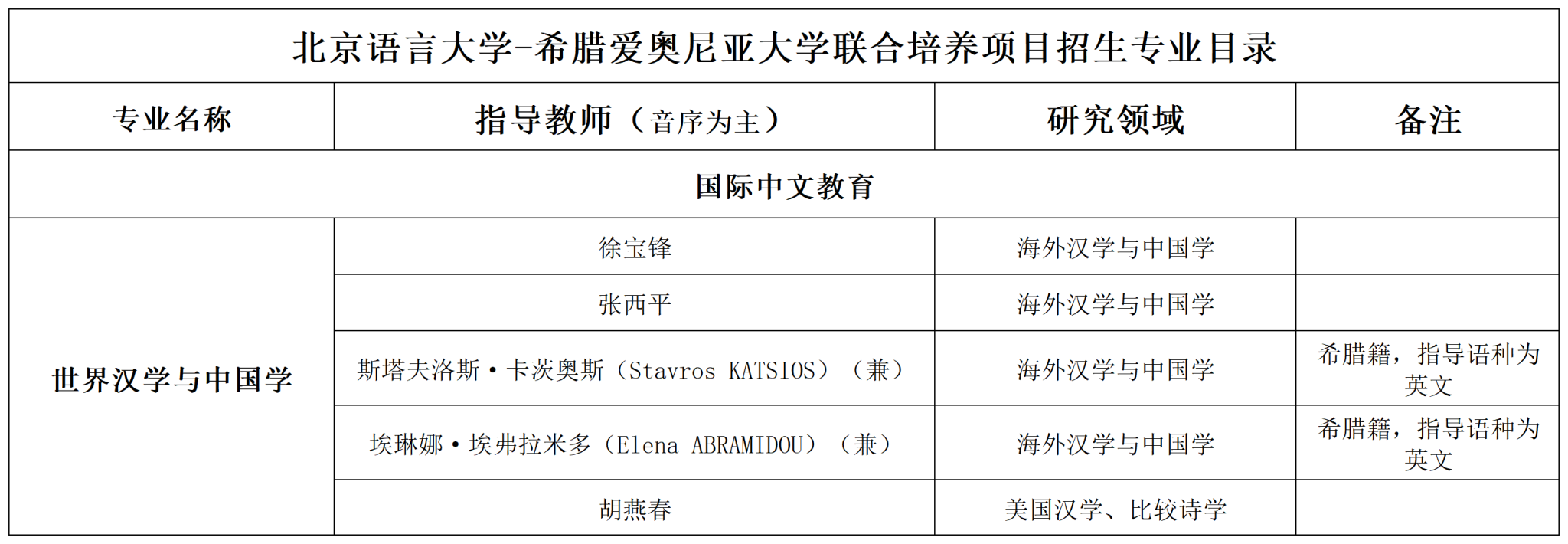 注:申请人须同时满足北京语言大学“世界汉学与中国学”和爱奥尼亚大学“文化遗产研究、汉学与中国研究和翻译研究”专业的博士入学要求。